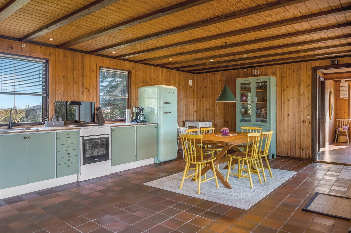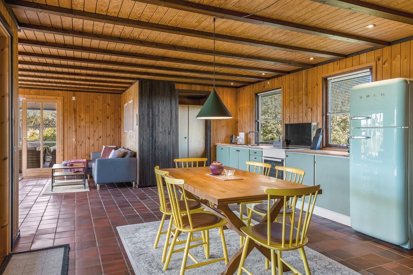 Køkkenet er udstyret med 1 køleskab. Der er 4 keramiske kogeplader, varmluftovn, mikrobølgeovn samt opvaskemaskine.