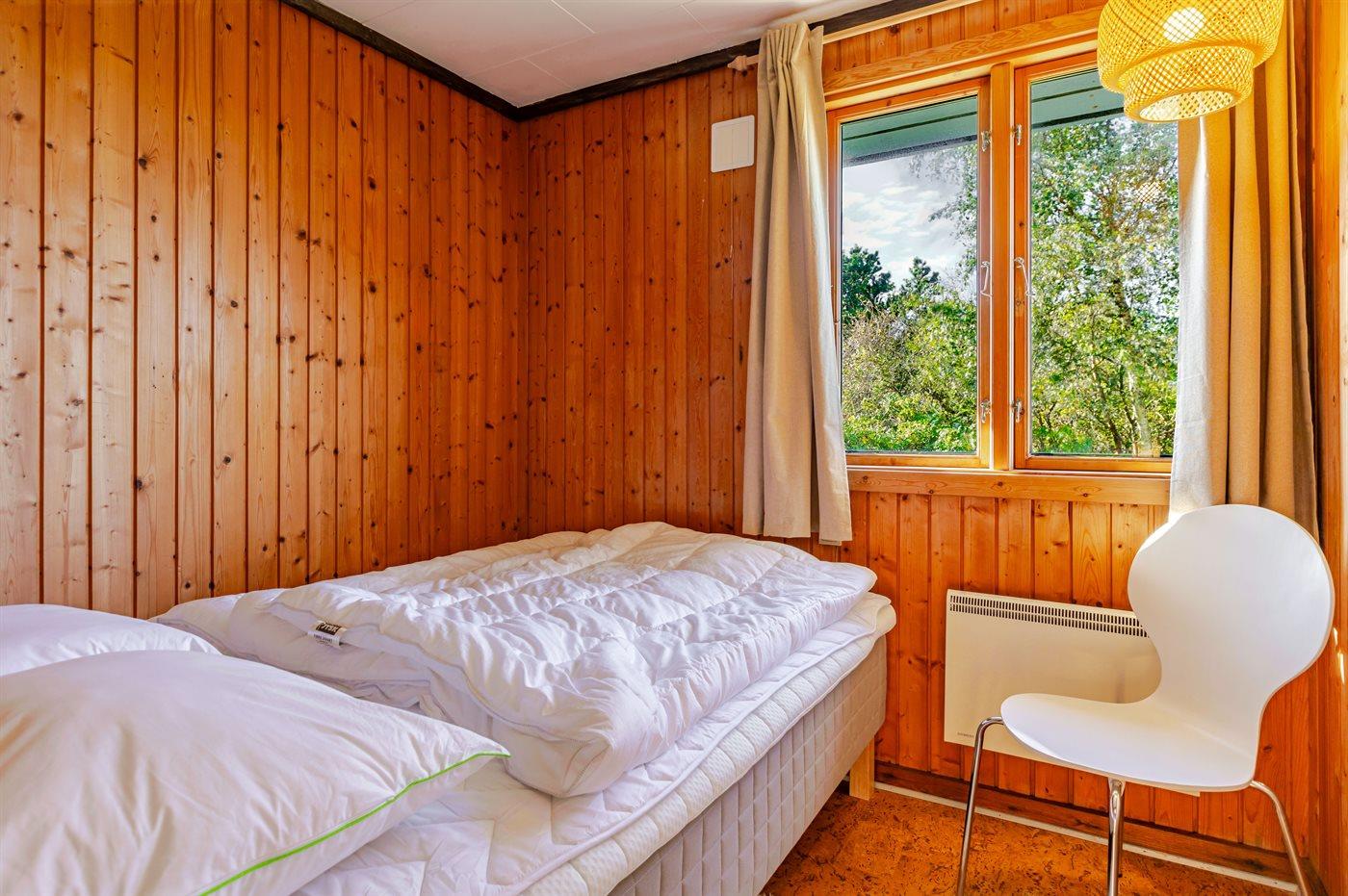 Der er i alt 3 soveværelser. Sovepladserne fordeler sig på: 4 sovepladser i dobbeltsenge. 1 soveplads i enkeltseng. 2 sovepladser på madrasser. 2 af disse sovepladser befinder sig på husets hems. Derudover er der 1 stk. barneseng.