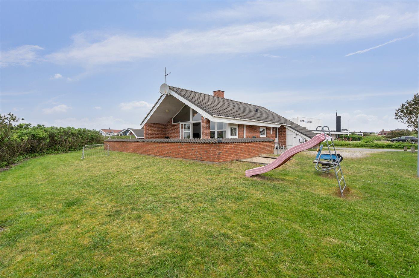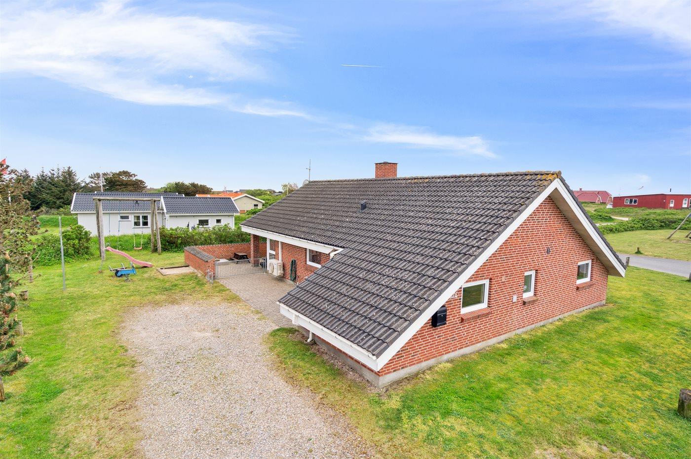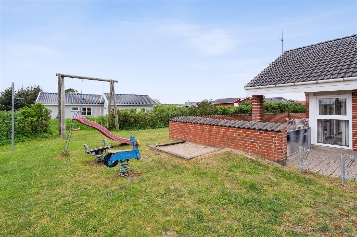 Ferieboligen er beliggende på en 900 m² stor naturgrund. Der er 400 m til havet. Nærmeste forretning er beliggende i en afstand af 800 m. Til ferieboligen hører lukket terrasse og til dels overdækket terrasse. Der er redskabsrum. Gynge. Sandkasse. Der ligger en legeplads i en afstand af 800 m. Grill til rådighed. Der er installeret stik til opladning af elbil. Parkering ved ferieboligen.