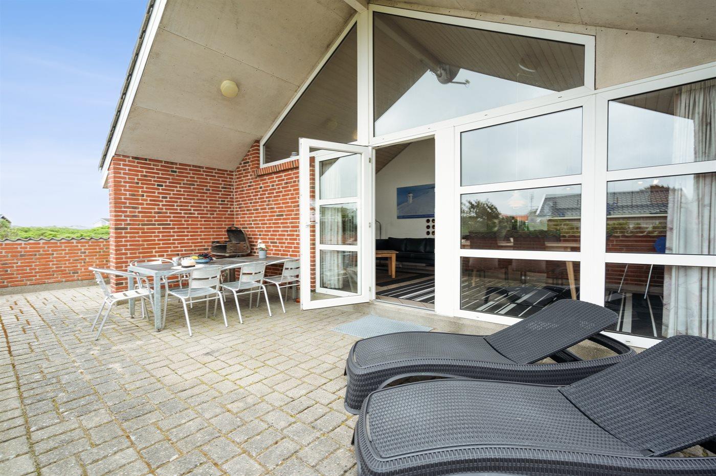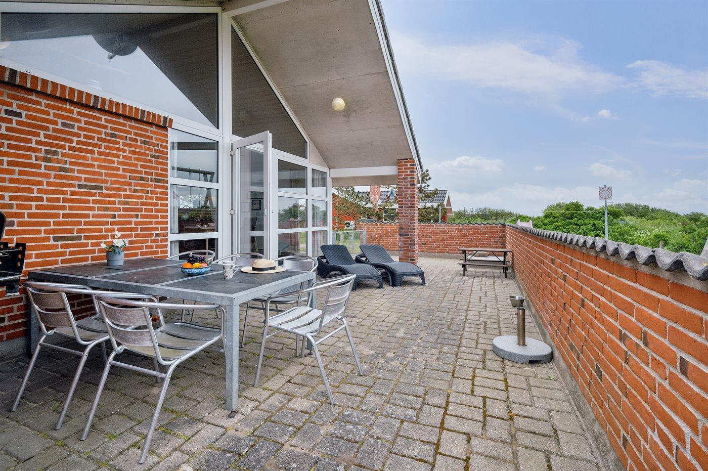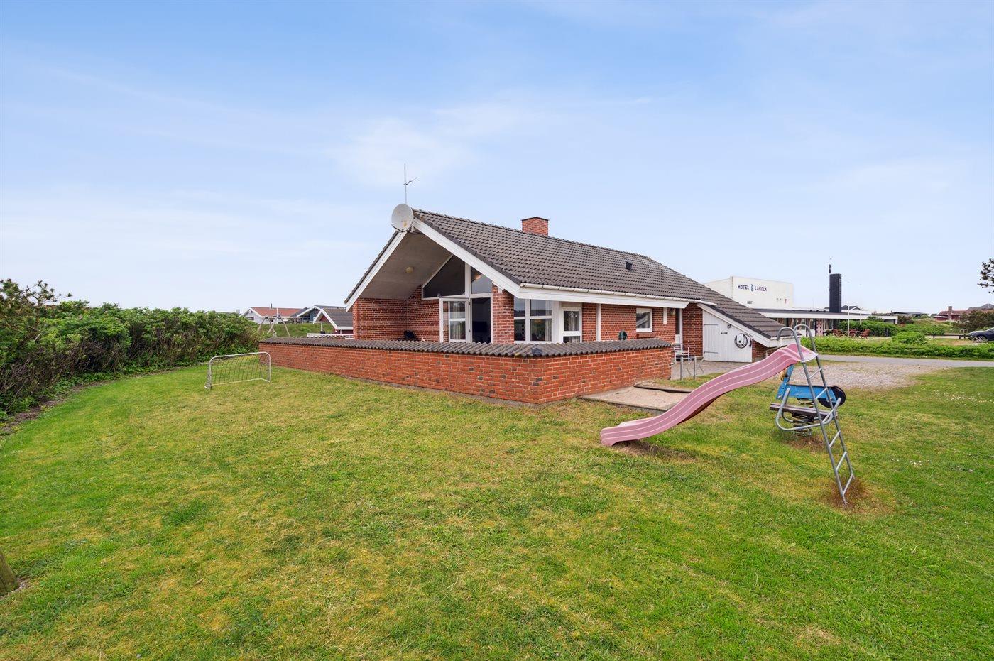 Ferieboligen er beliggende på en 900 m² stor naturgrund. Der er 400 m til havet. Nærmeste forretning er beliggende i en afstand af 800 m. Til ferieboligen hører lukket terrasse og til dels overdækket terrasse. Der er redskabsrum. Gynge. Sandkasse. Der ligger en legeplads i en afstand af 800 m. Grill til rådighed. Der er installeret stik til opladning af elbil. Parkering ved ferieboligen.