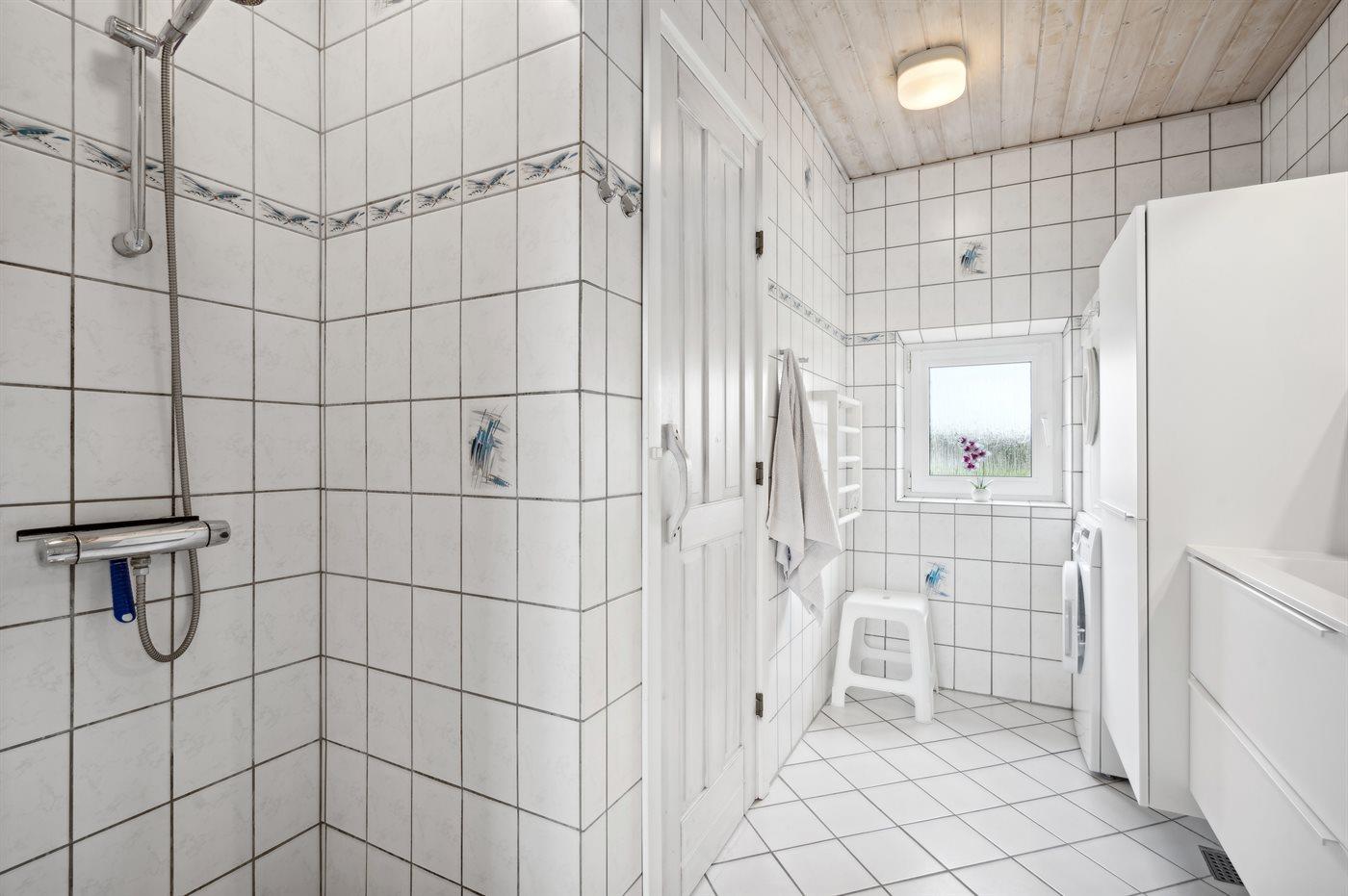 Der er 1 badeværelse med bruseniche og 2 toiletter, heraf 1 gæstetoilet. Der er gulvvarme på 1 badeværelse. I saunaen er der mulighed for afslapning.