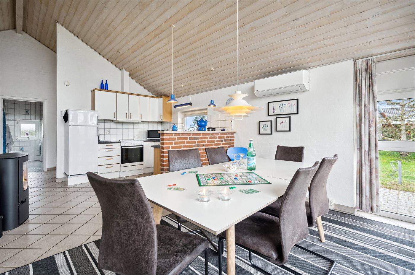 Køkkenet er udstyret med 1 køleskab. Der er 4 induktionskogeplader, varmluftovn, mikrobølgeovn samt opvaskemaskine.