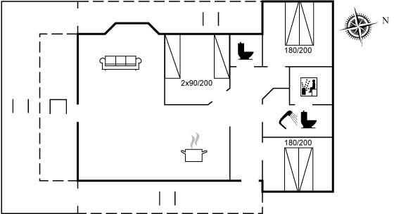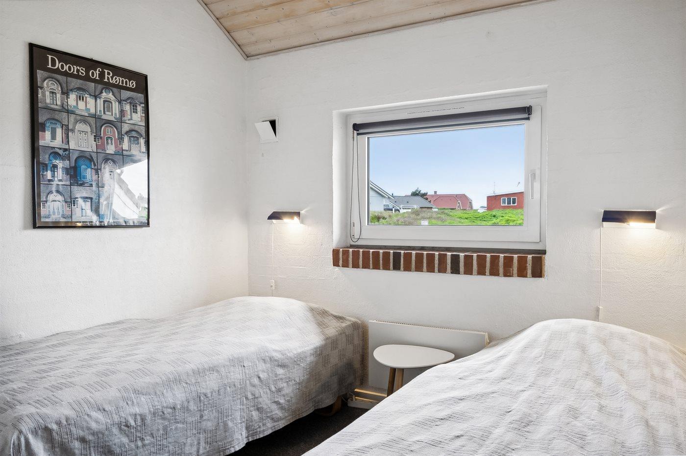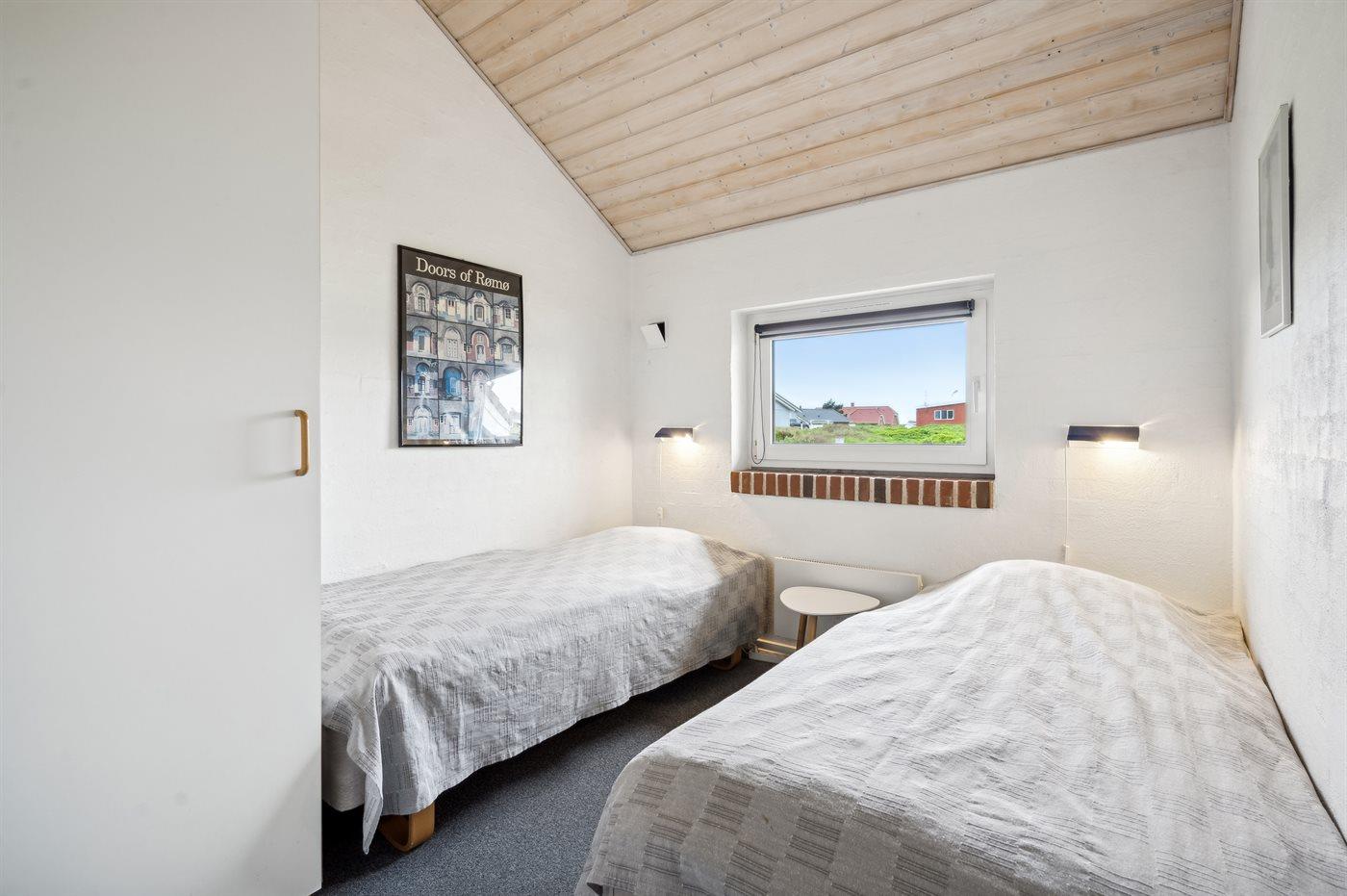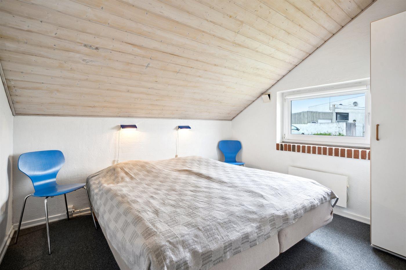 Der er i alt 3 soveværelser. Sovepladserne fordeler sig på: 4 sovepladser i dobbeltsenge. 2 sovepladser i enkeltsenge. Derudover er der 1 stk. barneseng.