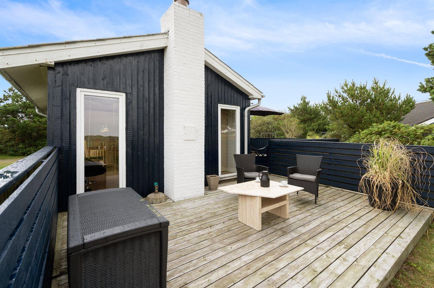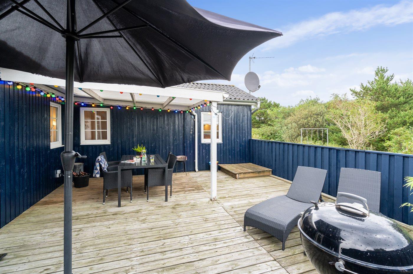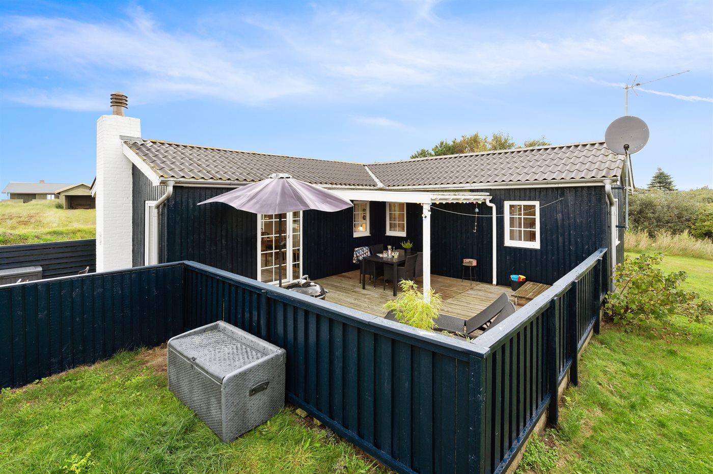 Ferieboligen er beliggende på en 2500 m² stor naturgrund. Der er 550 m til havet. Nærmeste forretning er beliggende i en afstand af 900 m. Der er en golfbane i en afstand af 6400 m. Til ferieboligen hører åbent terrasseareal. Desuden er der overdækket terrasse. Gynge. Sandkasse. Der ligger en legeplads i en afstand af 1000 m. Grill til rådighed. Parkering ved ferieboligen.