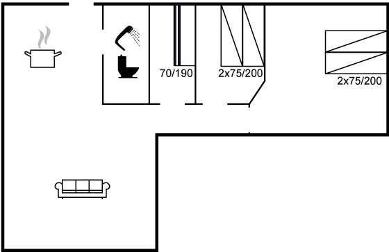 Der er i alt 3 soveværelser. Sovepladserne fordeler sig på: 4 sovepladser i dobbeltsenge. 2 sovepladser i køjeseng.