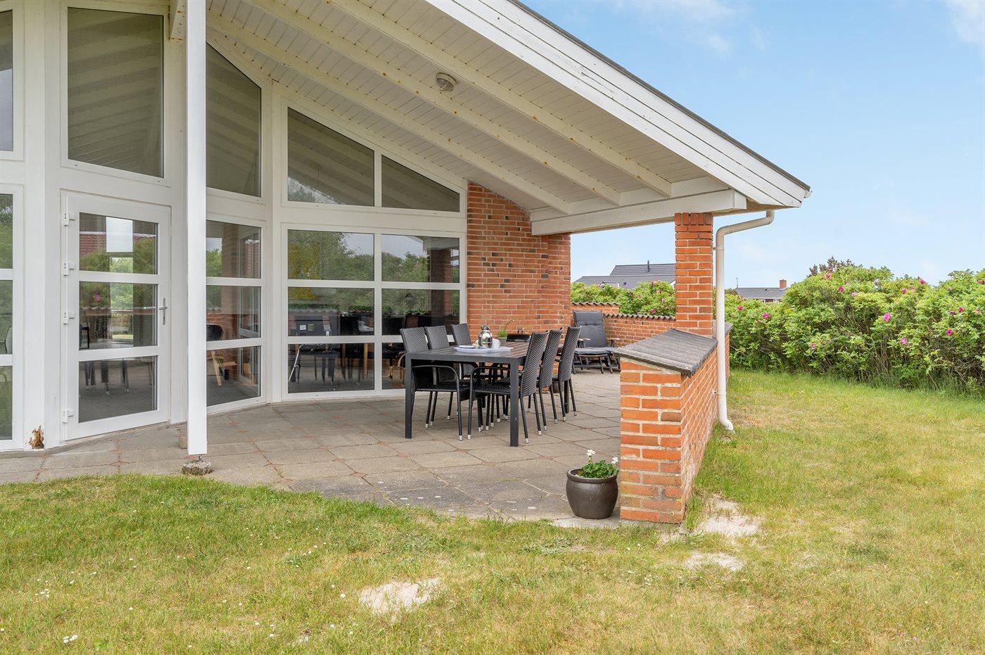 Ferieboligen er beliggende på en 1305 m² stor naturgrund. Der er 500 m til havet. Nærmeste forretning er beliggende i en afstand af 700 m. Til ferieboligen hører 30 m² terrasseareal. Desuden er der 25 m² overdækket terrasse. Der er redskabsrum. Gynge. Sandkasse. Der er installeret Easee Laderobot til opladning af elbil. Parkering ved ferieboligen.