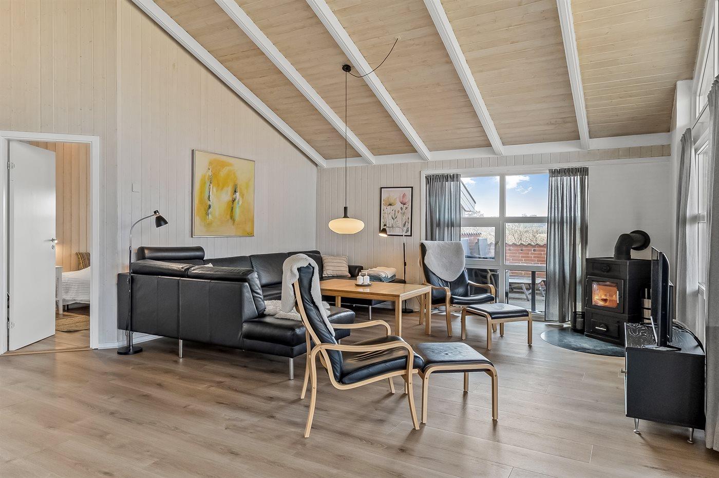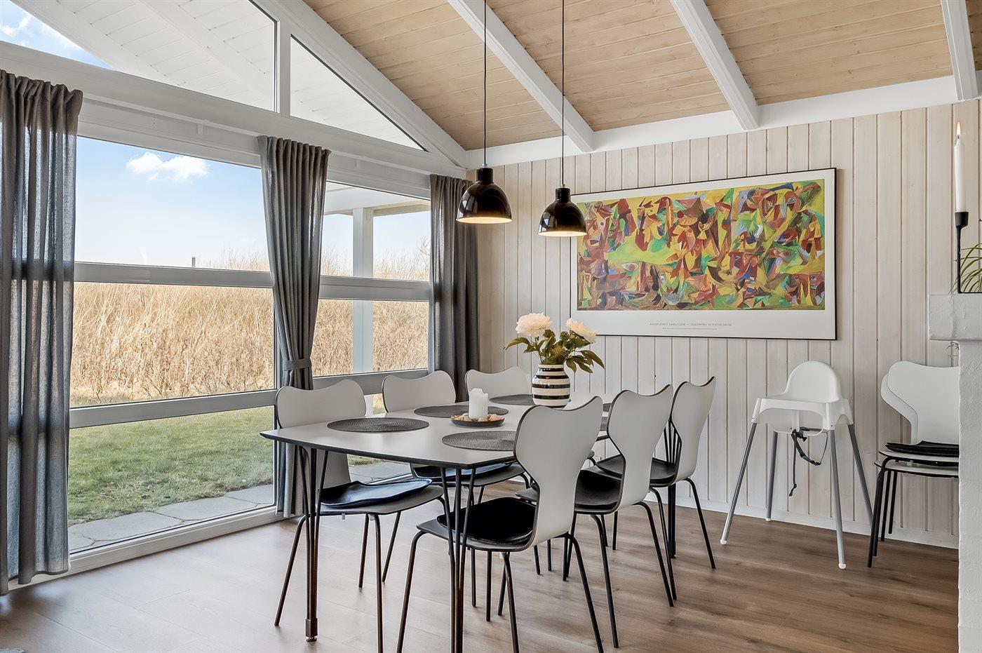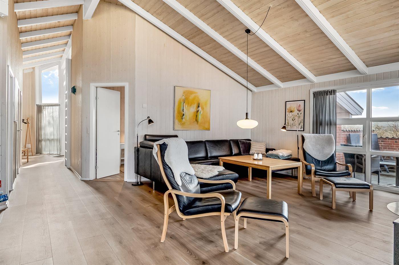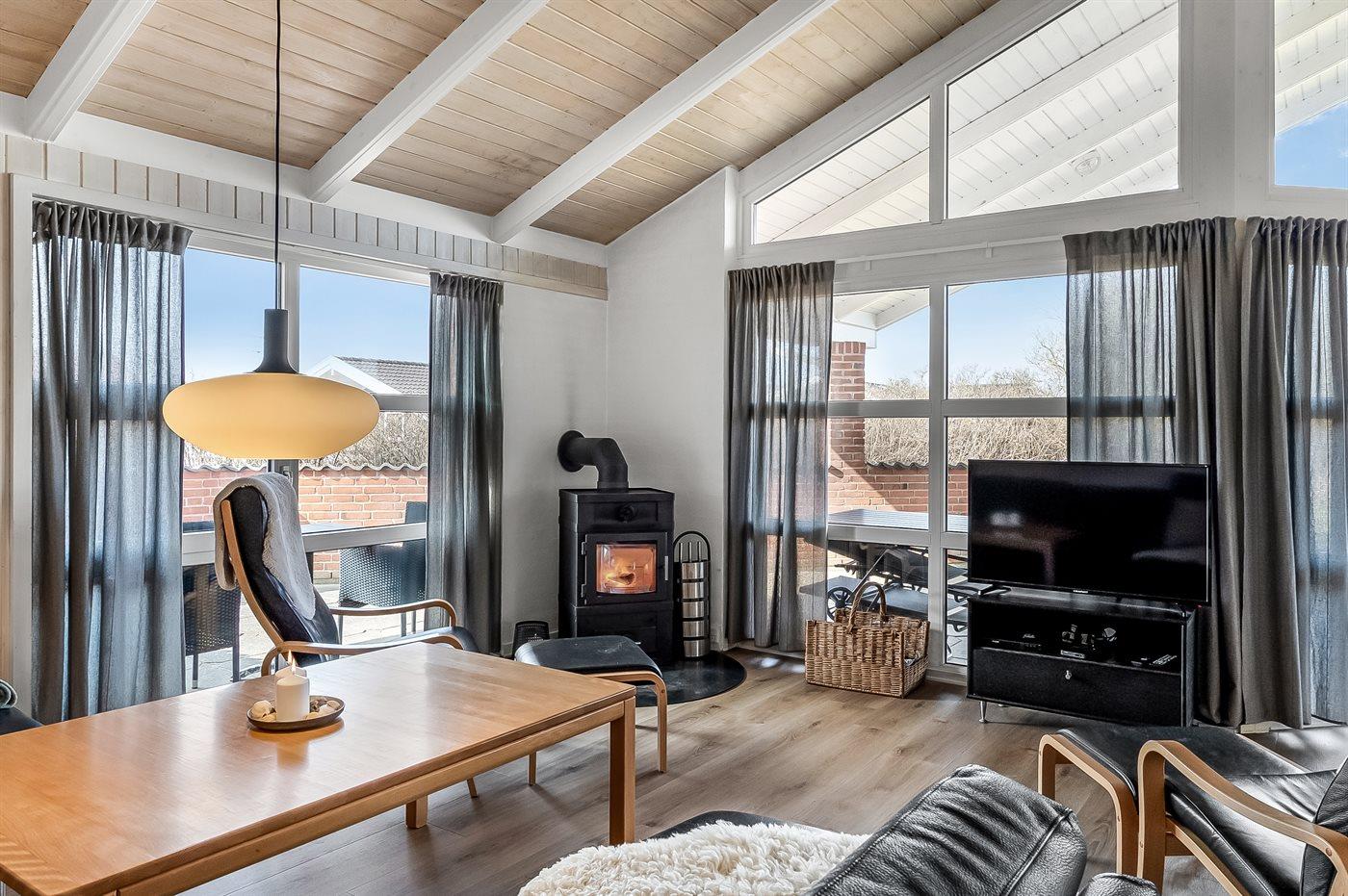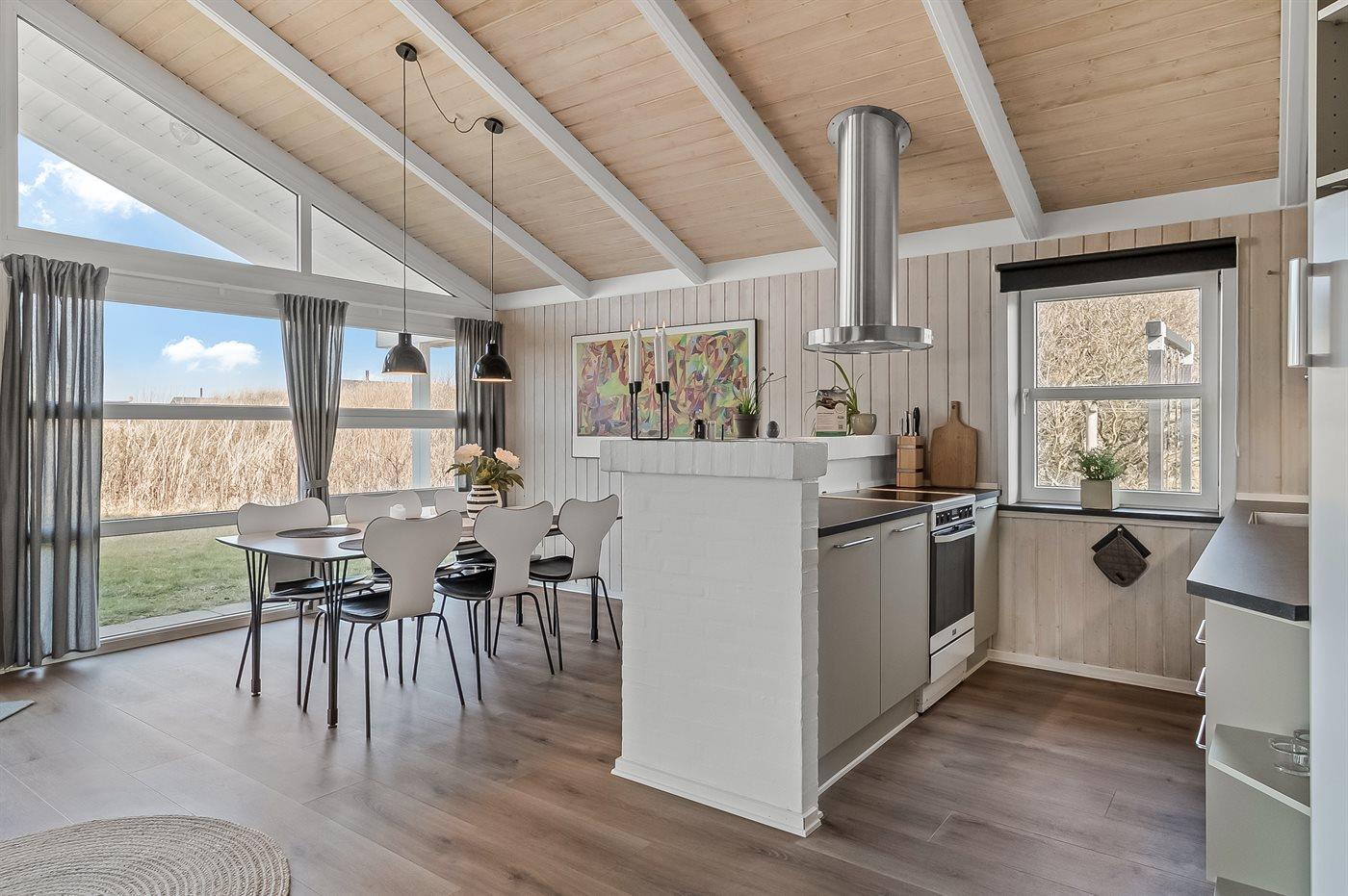 Skønt kvalitetssommerhus beliggende nær stranden og Vesterhavet. Huset er smagfuldt indrettet med adgang til hems, hvor 2 af sovepladserne befinder sig.