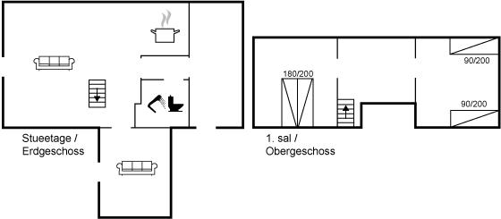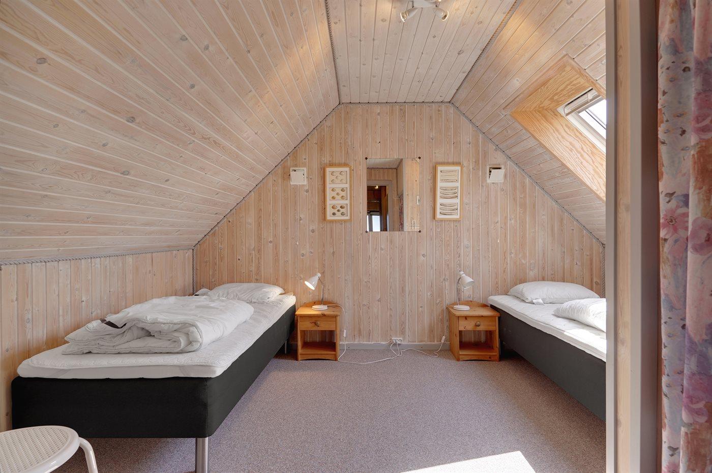 Der er i alt 2 soveværelser. Sovepladserne fordeler sig på: 2 sovepladser i dobbeltseng. 2 sovepladser i enkeltsenge.
