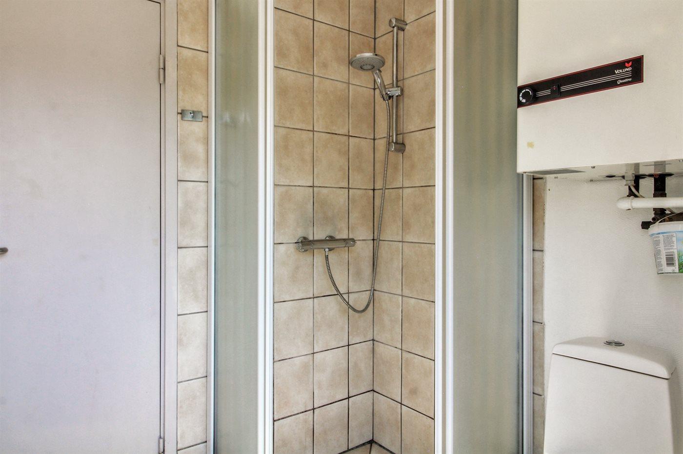 Der er 1 badeværelse med bruser og 1 toilet.