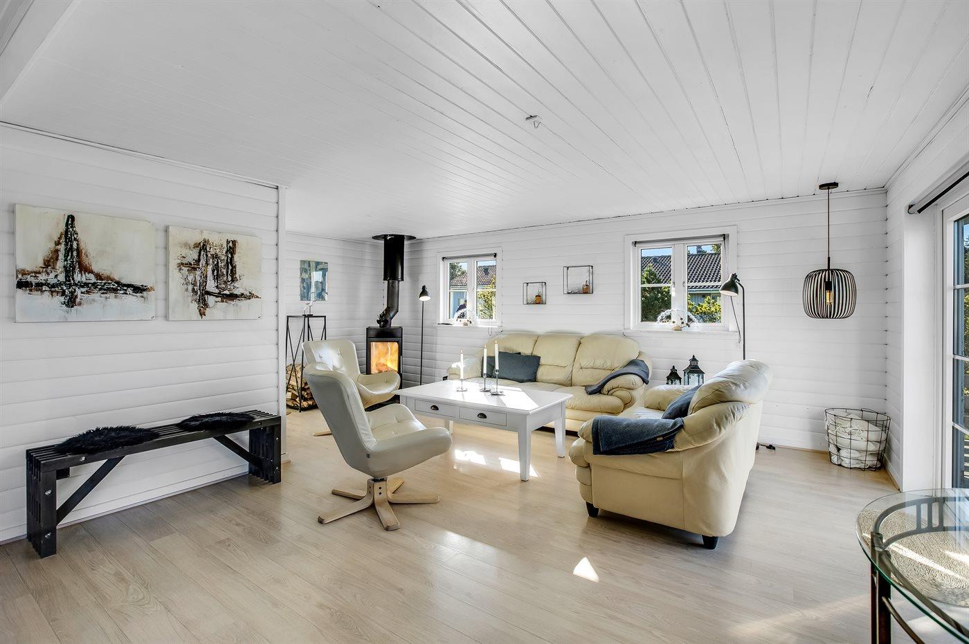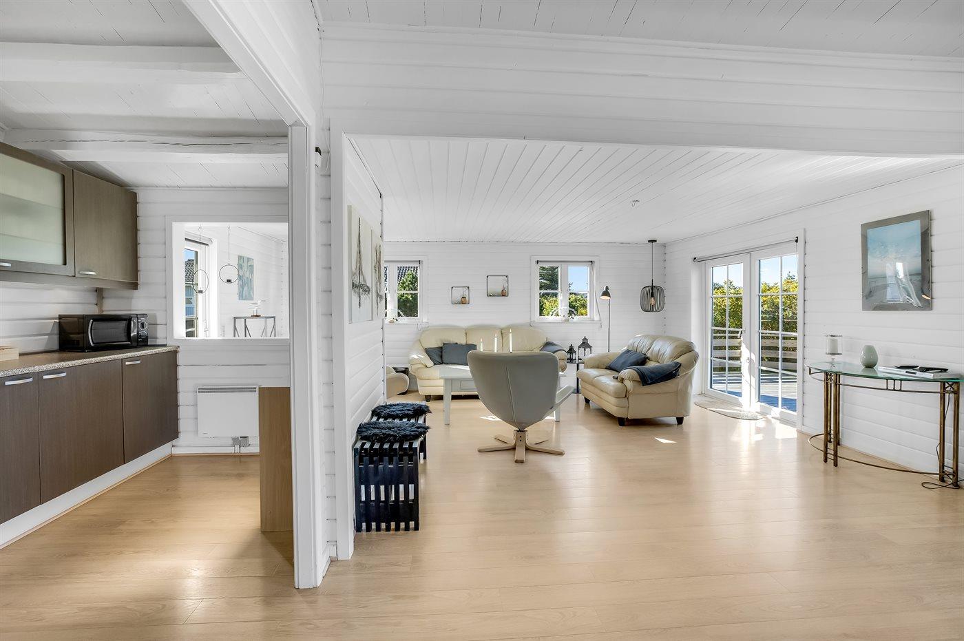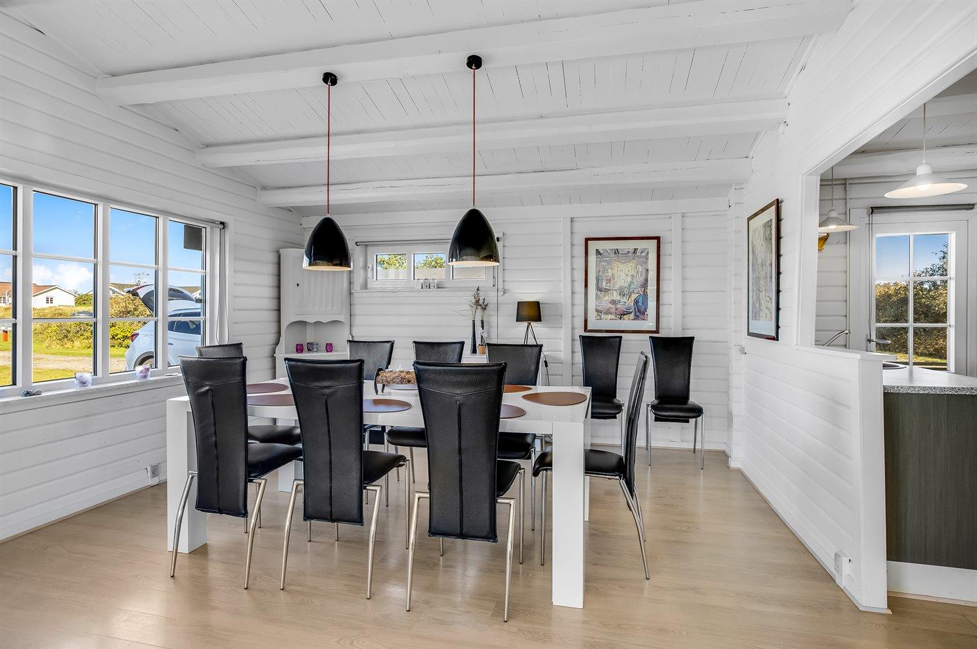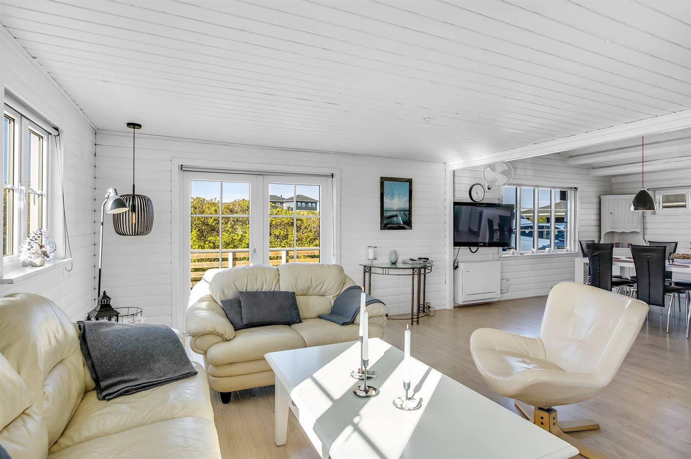 Kun 500 m fra den dejlige strand finder I dette flotte sommerhus. Huset er omgivet af et dejligt, stort og delvist overdækket terrasseareal med havemøbler.