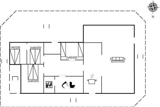 Der er i alt 4 soveværelser. Sovepladserne fordeler sig på: 6 sovepladser i dobbeltsenge. 2 sovepladser i enkeltsenge.