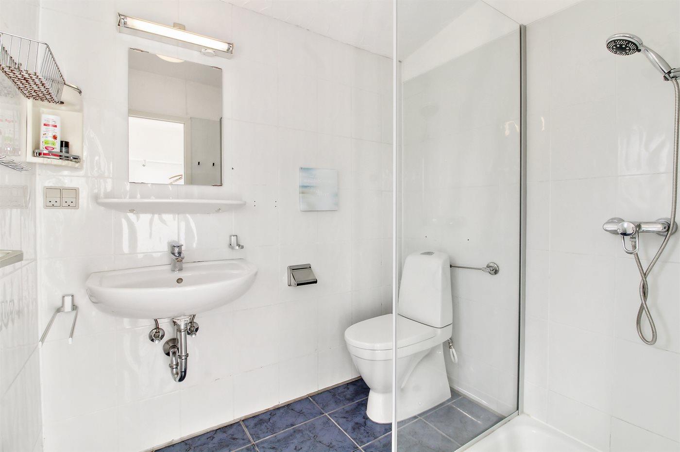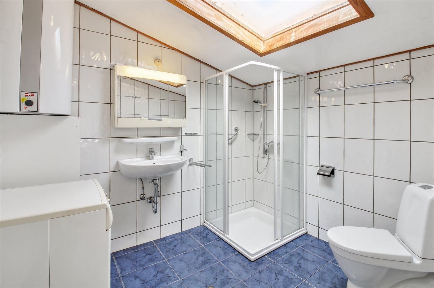 Der er 2 badeværelser med bruseniche og 2 toiletter. Der er gulvvarme på 2 badeværelser.