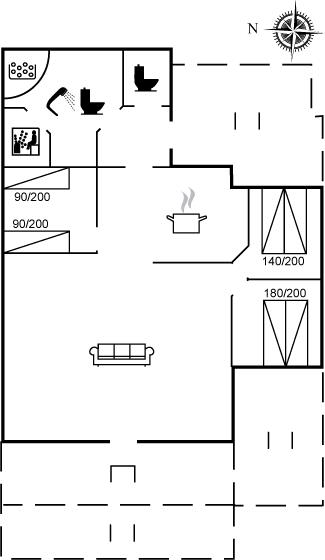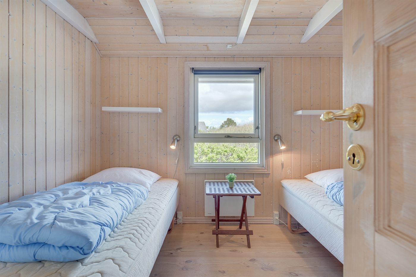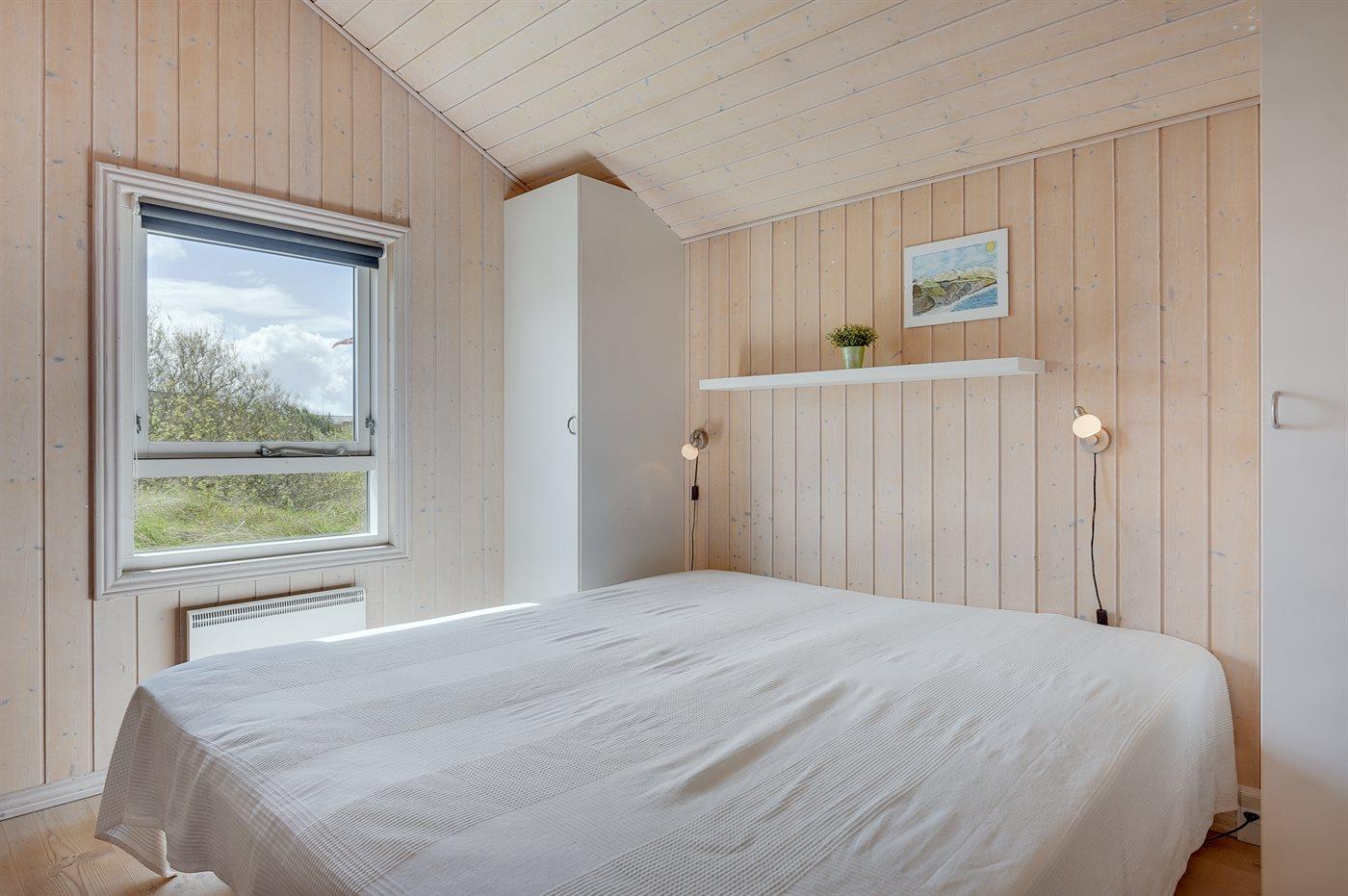 Der er i alt 3 soveværelser. Sovepladserne fordeler sig på: 4 sovepladser i dobbeltsenge. 2 sovepladser i enkeltsenge. 2 sovepladser på madrasser. 2 af disse sovepladser befinder sig på husets hems.