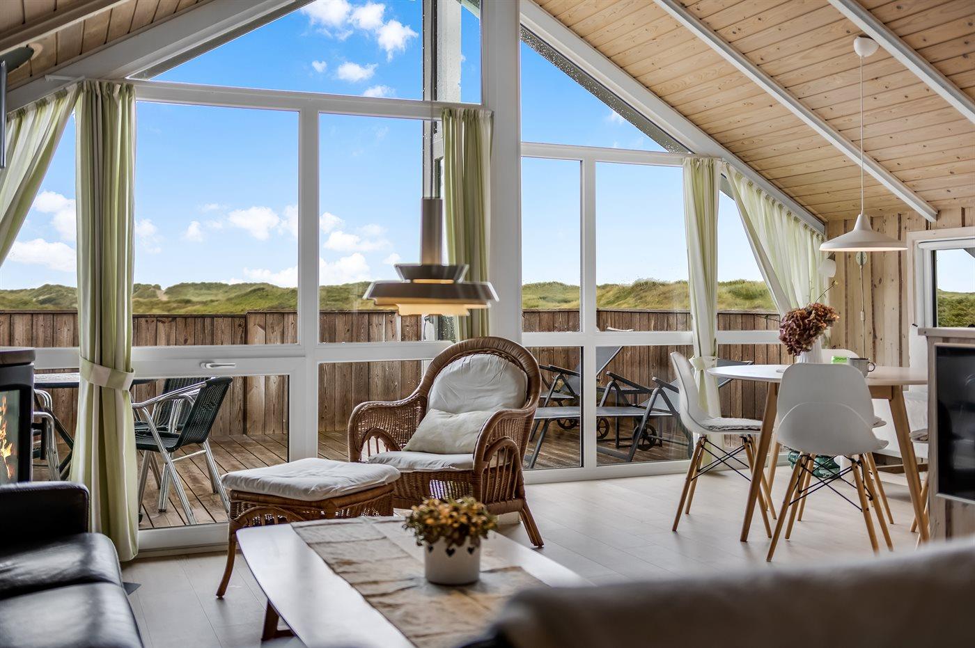 Dette hyggelige sommerhus ligger i et naturskønt område – ikke langt fra stranden med udsigt ud over klitterne fra både hus og terrasse.