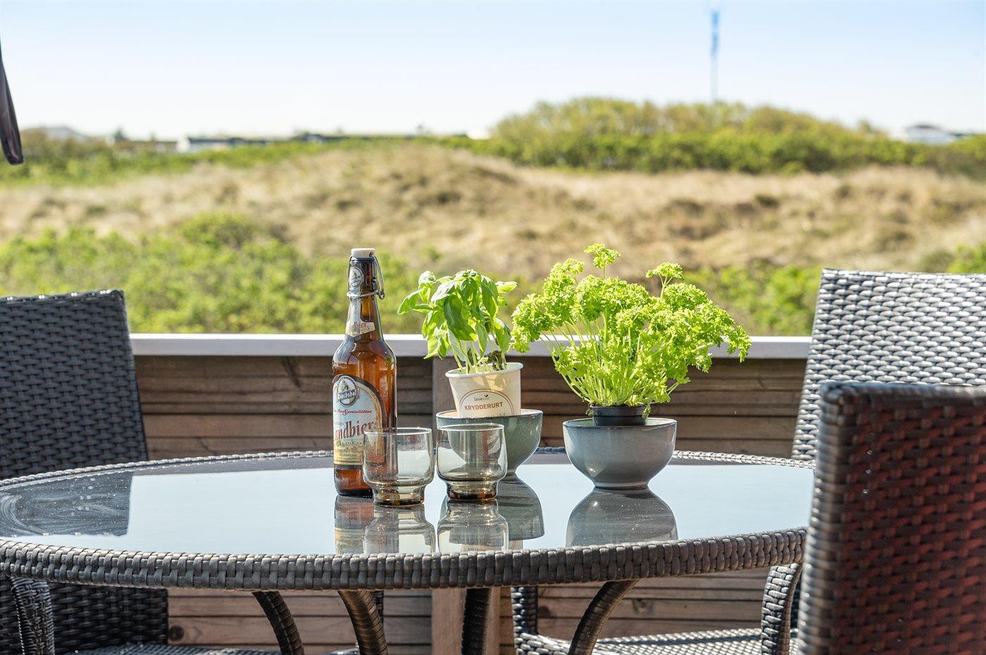 Dette dejlige, lille sommerhus i træ, bygget i 1950 og løbende renoveret, ligger på en kuperet naturgrund med en fantastisk, ugeneret udsigt over Vesterhavet. Til huset hører såvel åben som overdækket terrasse med havemøbler.