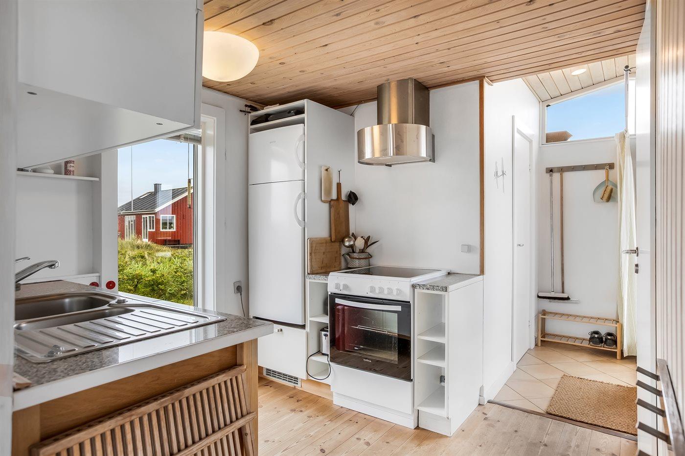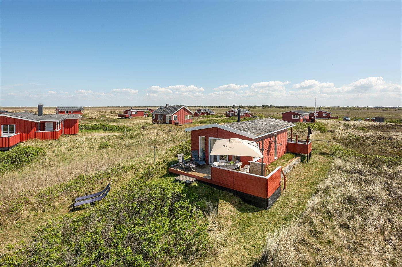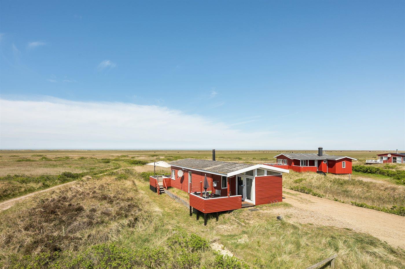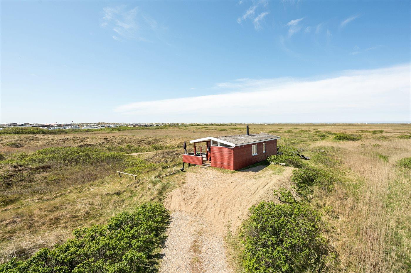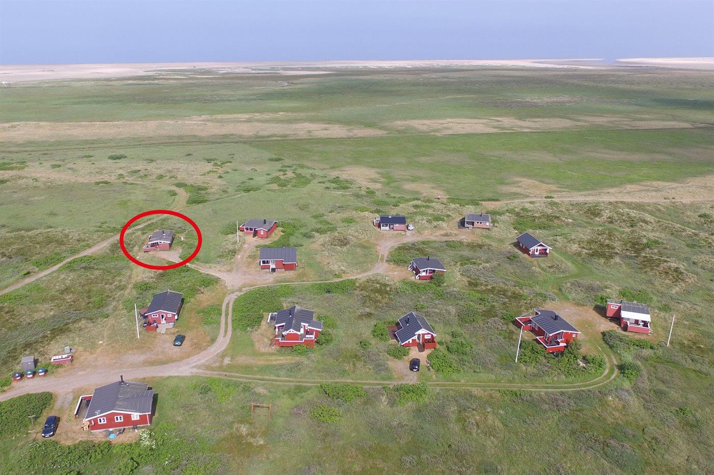 Huset ligger i udkanten af området - kun 300 m fra den dejlige brede og børnevenlige sandstrand på Lakolk.