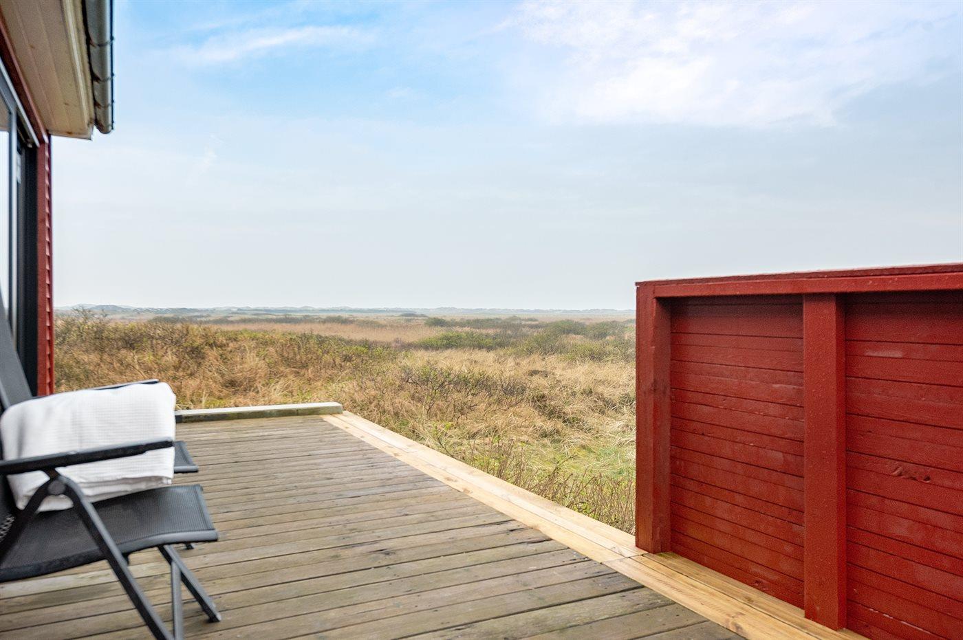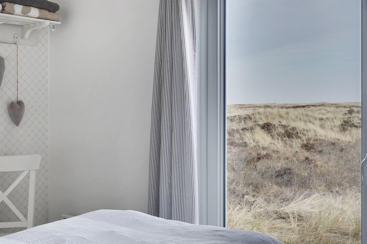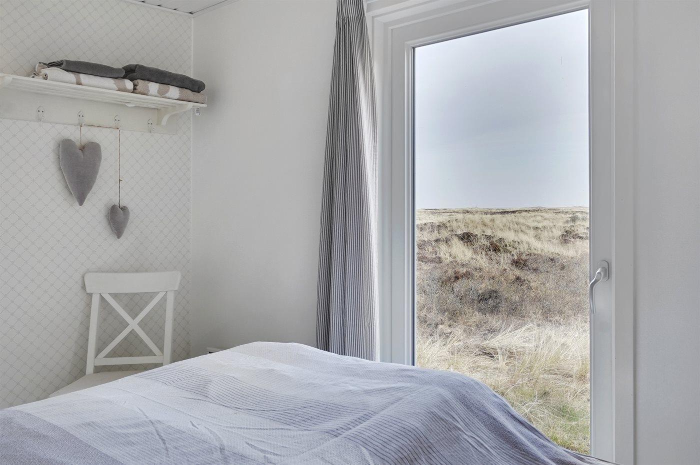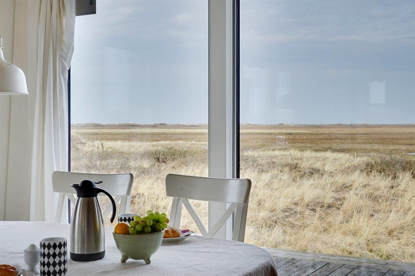 Et dejligt og lyst indrettet sommerhus med udsigt over Vesterhavet. Bemærk, at de 2 sovepladser på sovesofaen befinder sig i opholdsstuen.