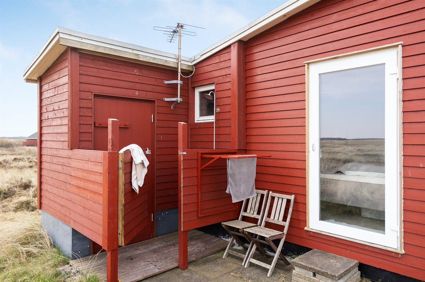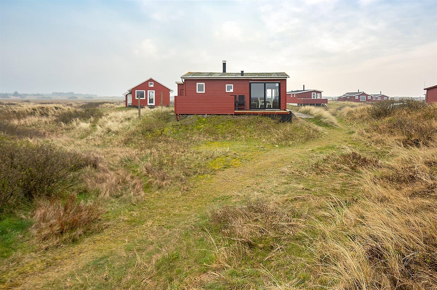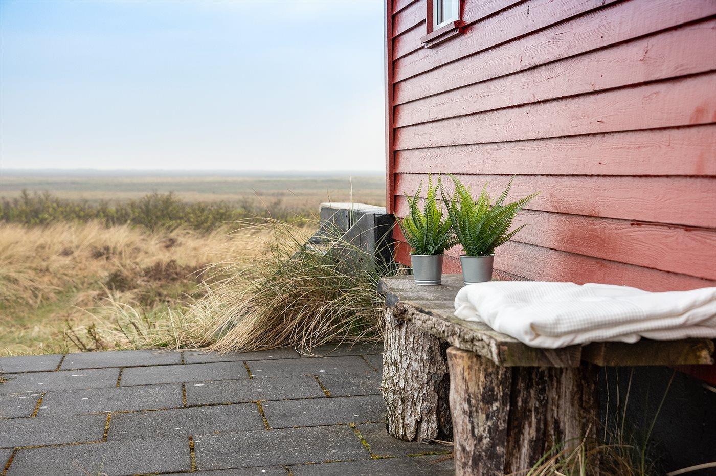 Ferieboligen er beliggende på en 1400 m² stor naturgrund. Der er 750 m til havet. Der er 3800 m til Vadehavet. Nærmeste forretning er beliggende i en afstand af 700 m. Til ferieboligen hører 14 m² terrasseareal. Desuden er der 5 m² overdækket terrasse. Parkering ved ferieboligen.