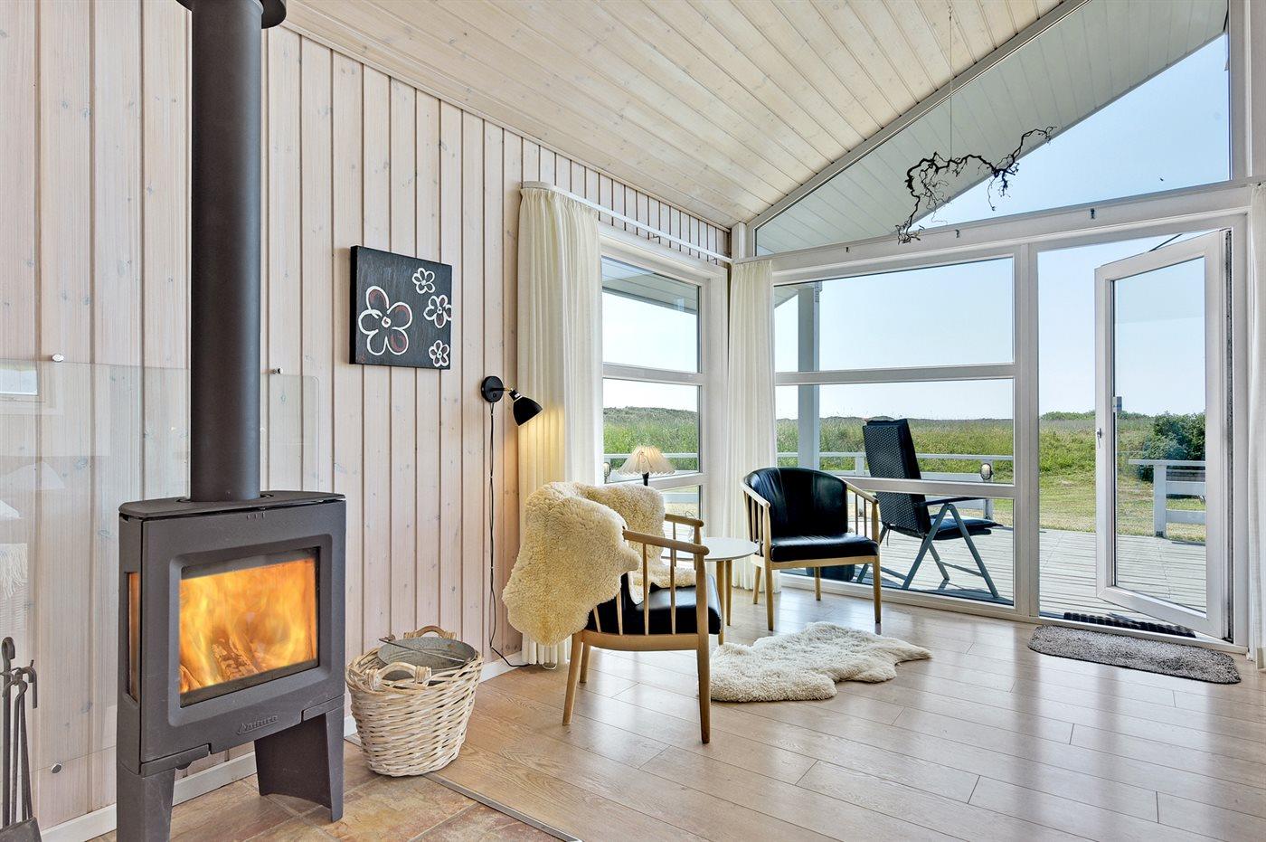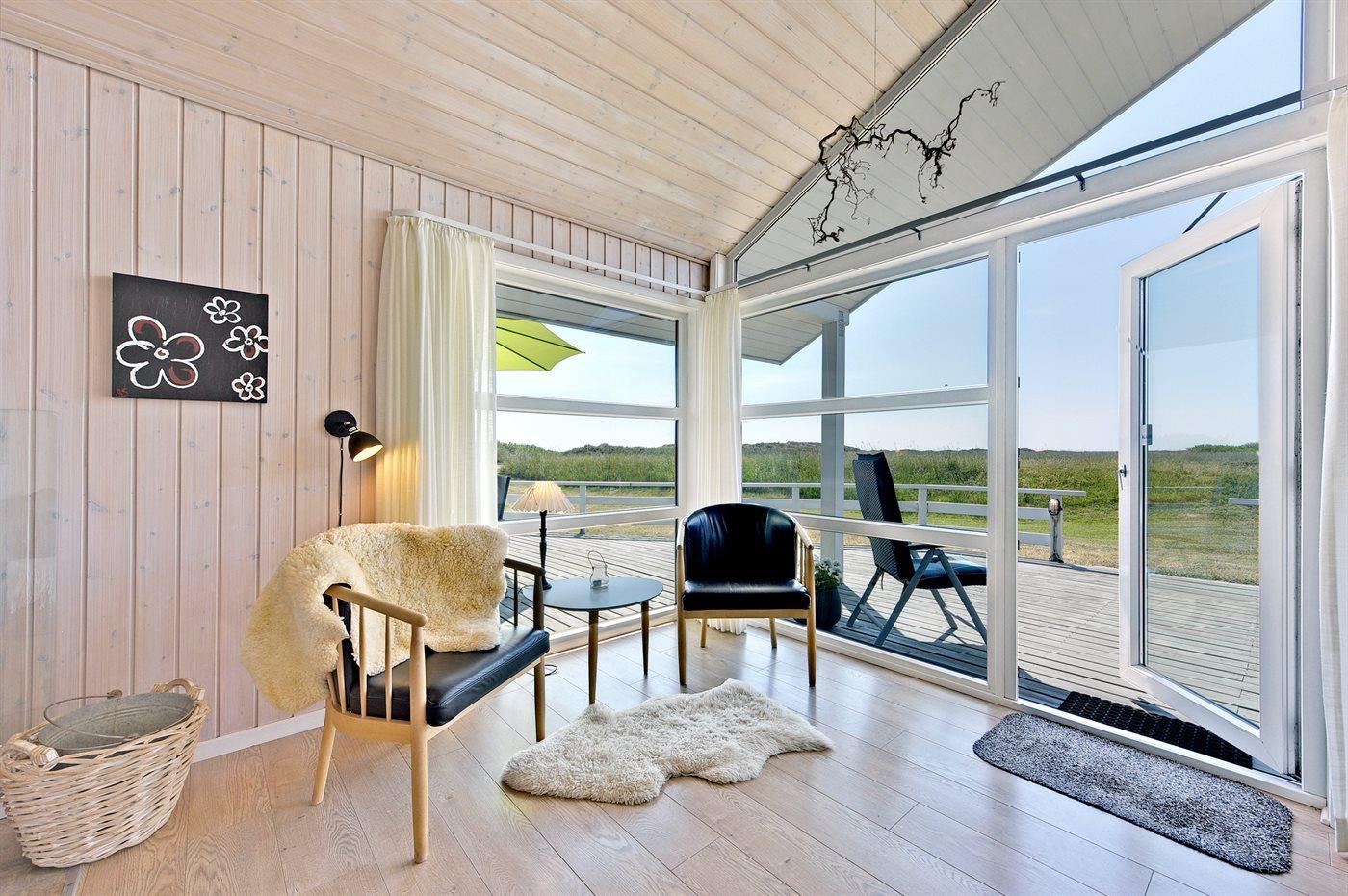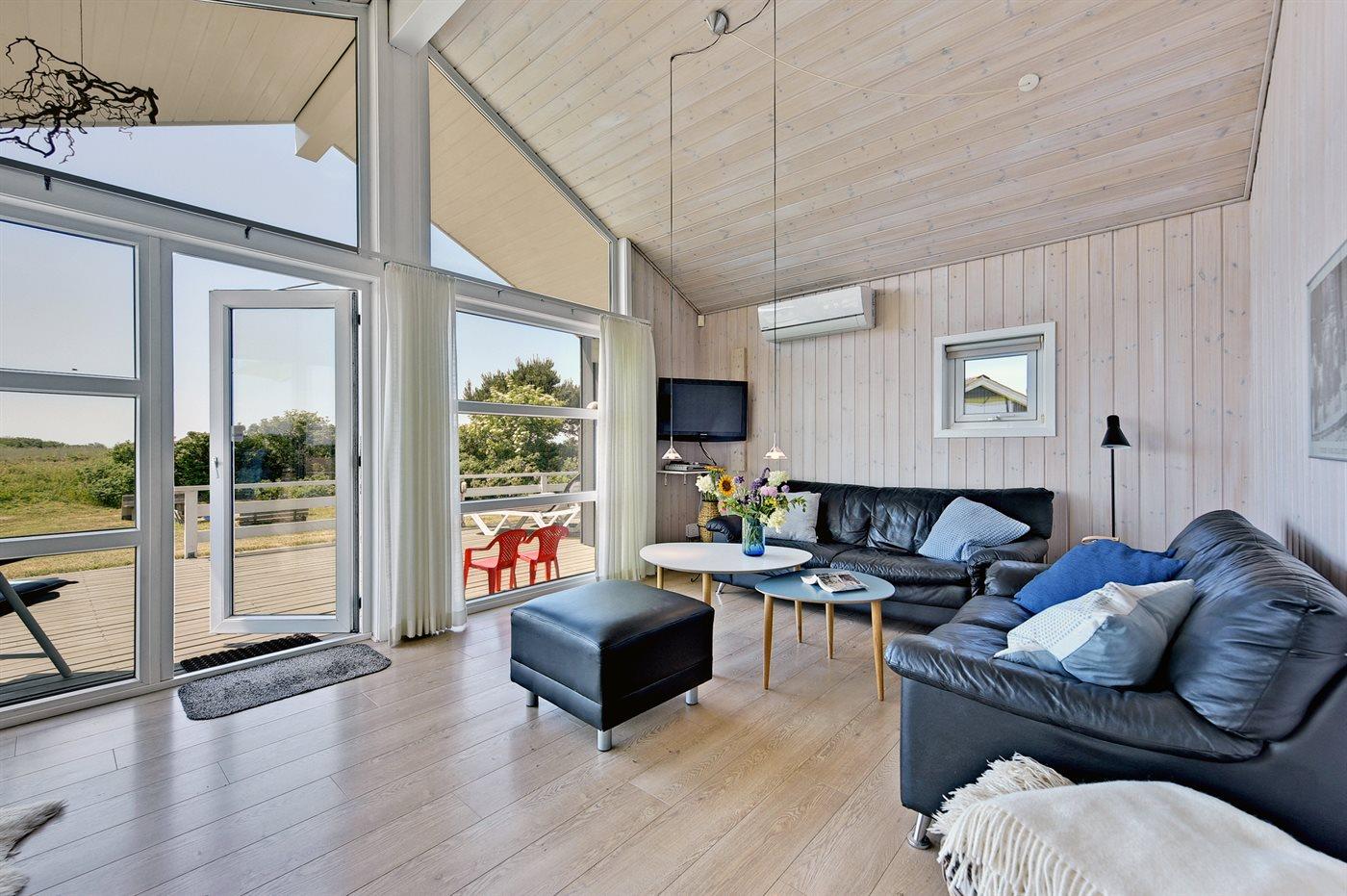 Dette flotte og velholdte sommerhus ligger på en dejlig grund nær den skønne og brede sandstrand samt i dejlig natur lige ved fredet område. Huset er indrettet lyst og stilrent, med store vinduer, og den dejlige 180 graders udsigt kan nydes over de fredede arealer med masser af fugle- og dyreliv.