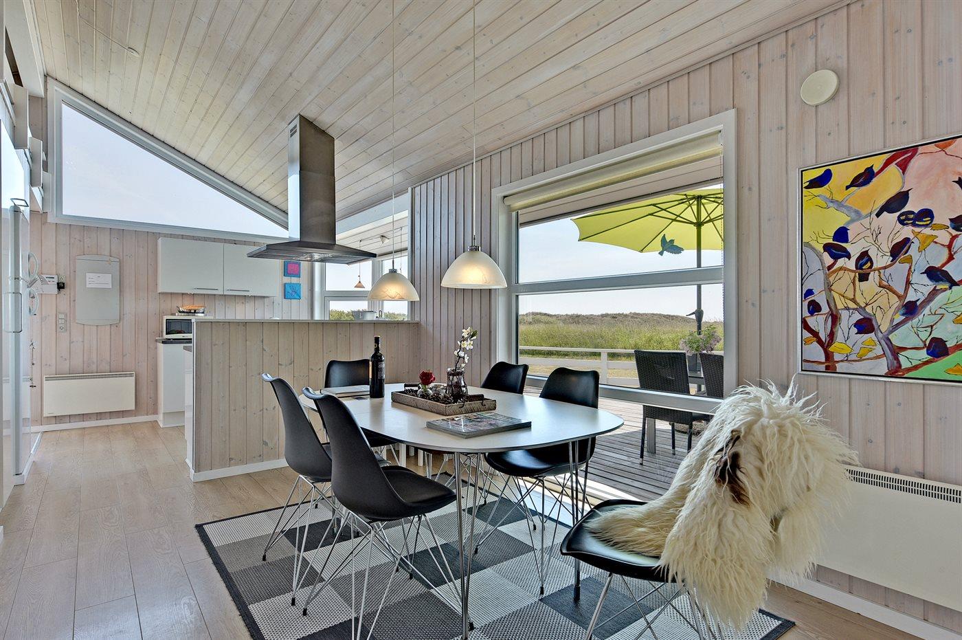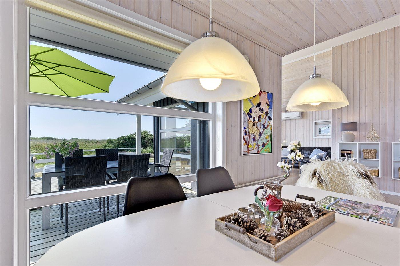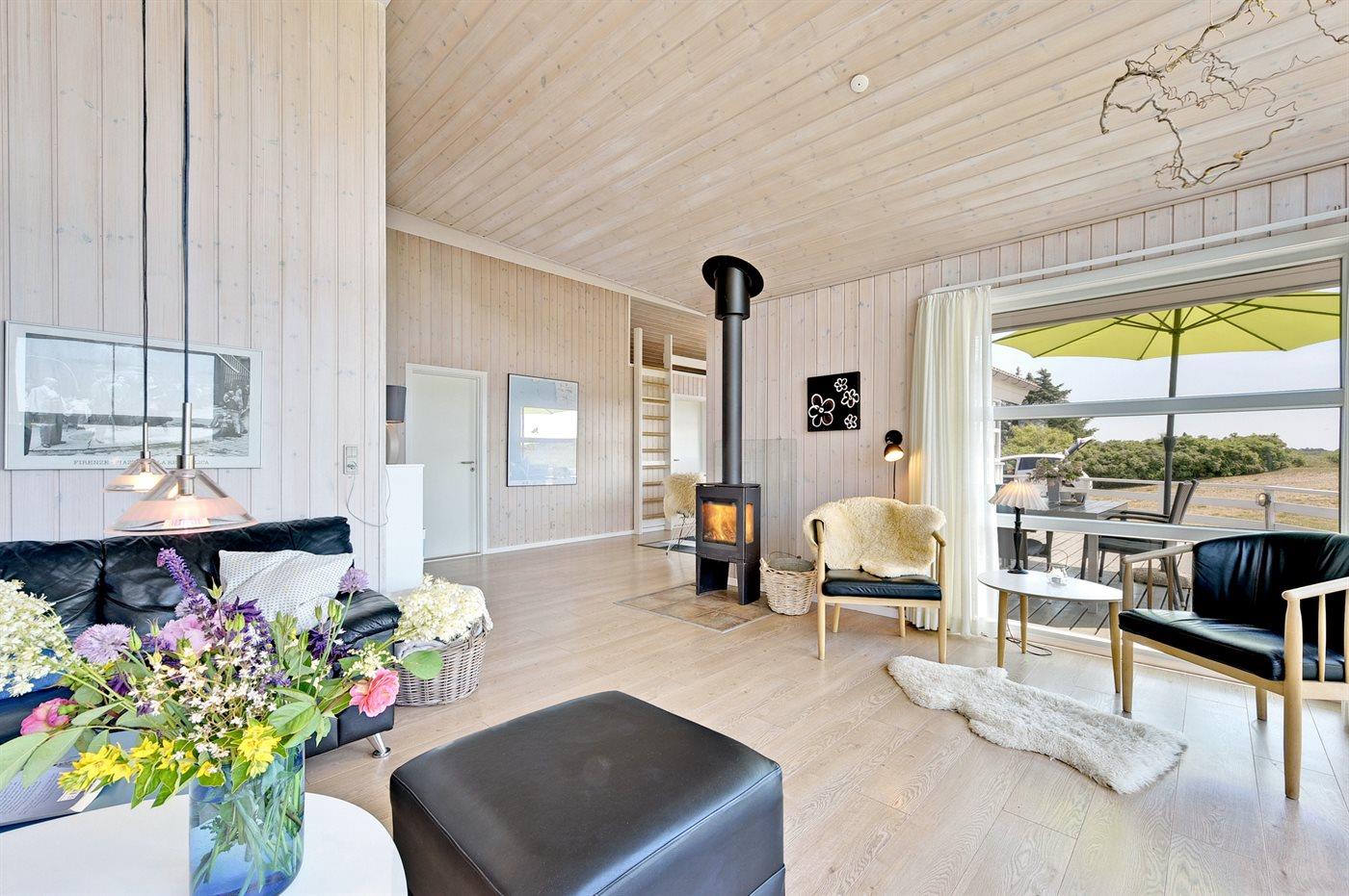Dette flotte og velholdte sommerhus ligger på en dejlig grund nær den skønne og brede sandstrand samt i dejlig natur lige ved fredet område. Huset er indrettet lyst og stilrent, med store vinduer, og den dejlige 180 graders udsigt kan nydes over de fredede arealer med masser af fugle- og dyreliv.