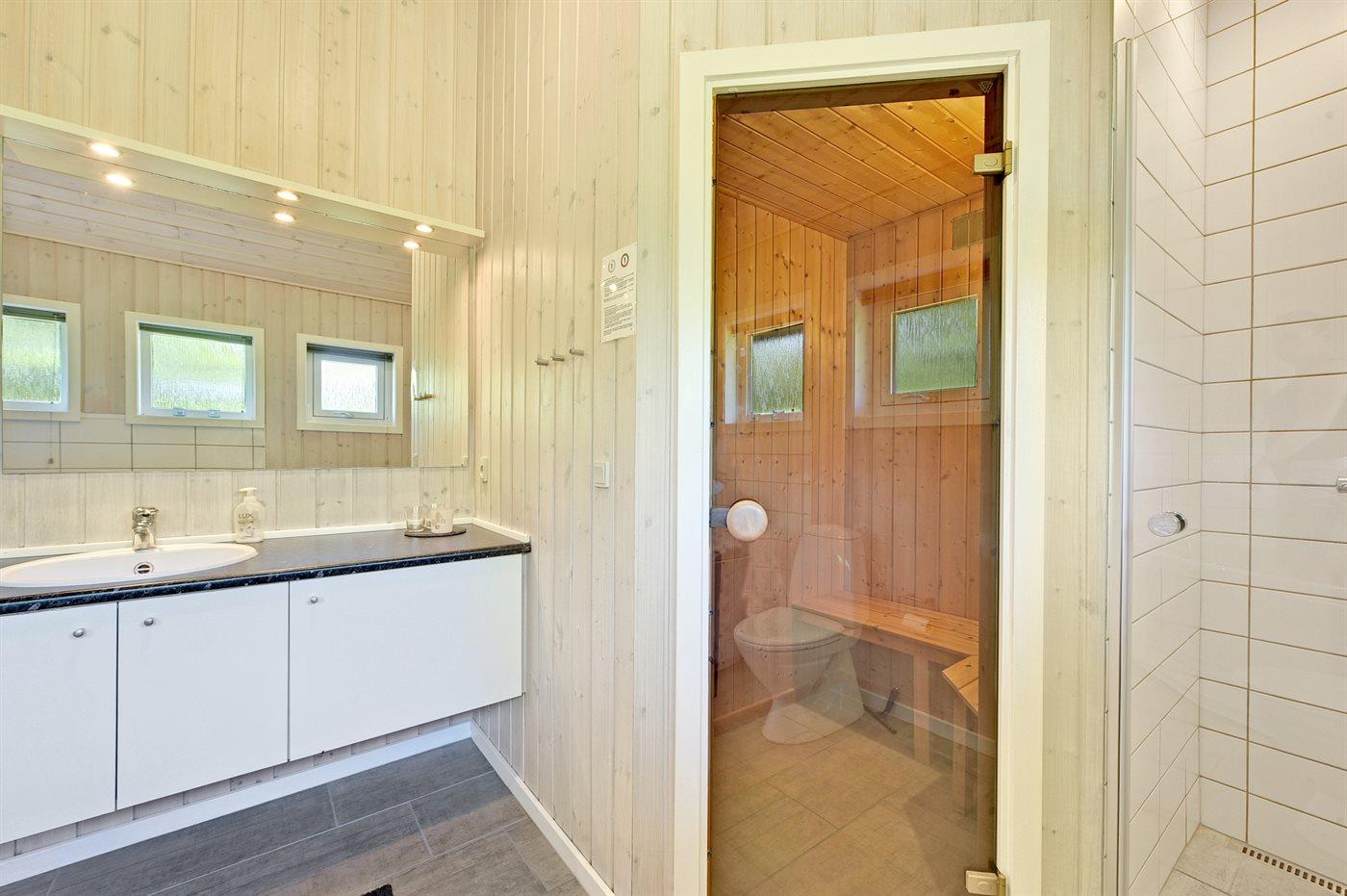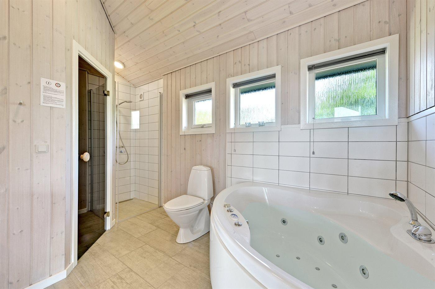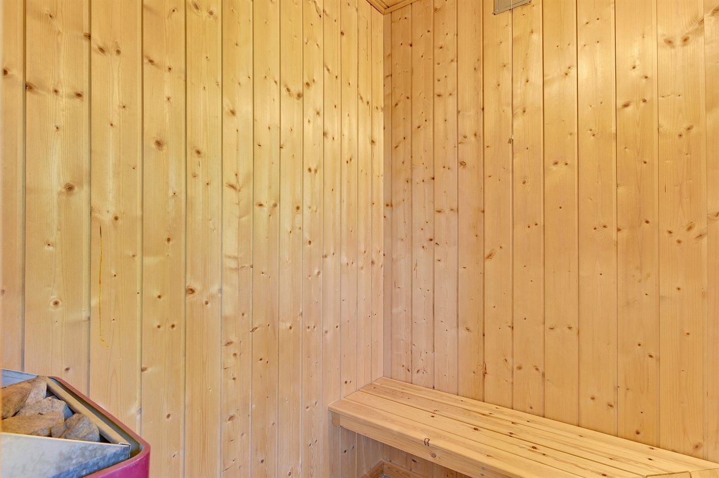 Stue og køkken er i åben forbindelse, og der findes en dejlig brændeovn, der kan sørge for hyggen og varmen en kold aften. I det helt nye badeværelse er der både bruser, sauna og spa med lysterapi. Pengeskab til rådighed.