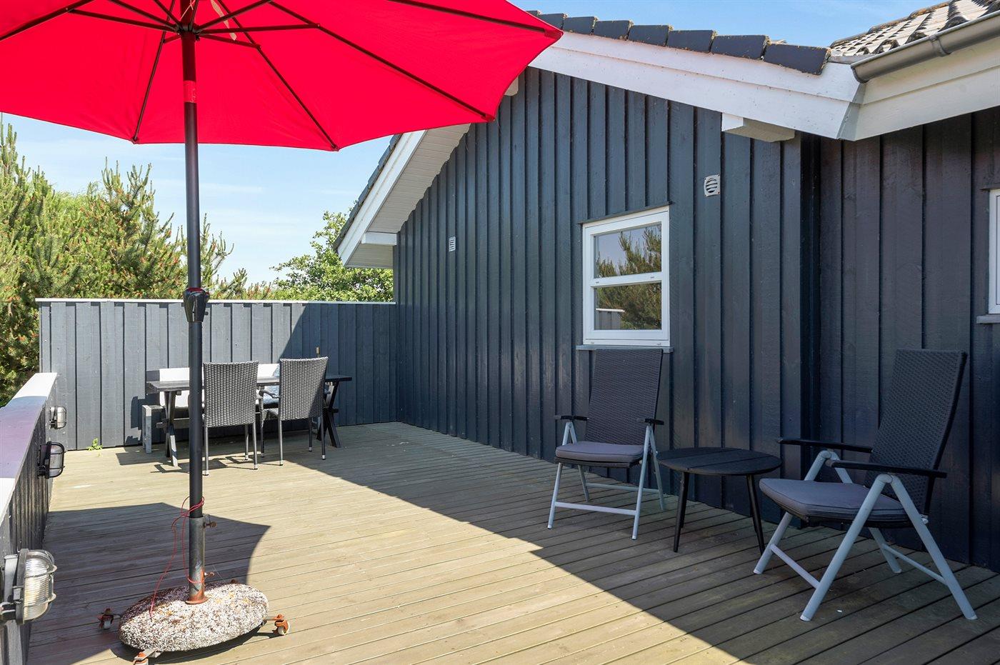 Til huset hører – udover en stor græsplæne - flere gode terrasser, hvor I kan nyde solen dagen lang eller grille om aftenen. Til de små er der 2 sandkasser og et gyngestativ.