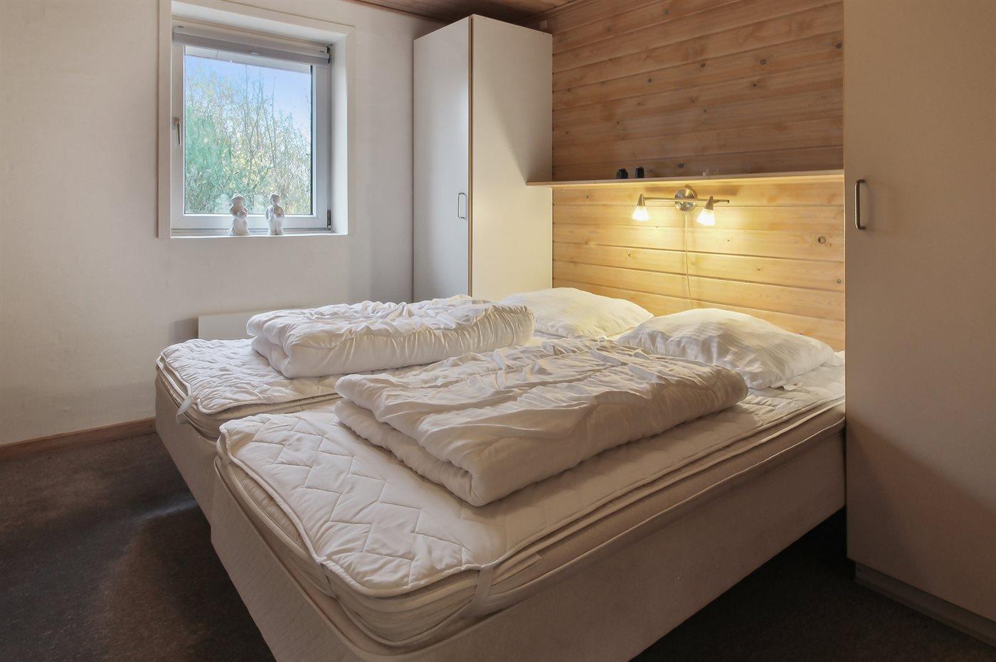 Husets sovepladser fordeler sig på 2 værelser med dobbeltseng og 1 værelse med dobbelt sovesofa.