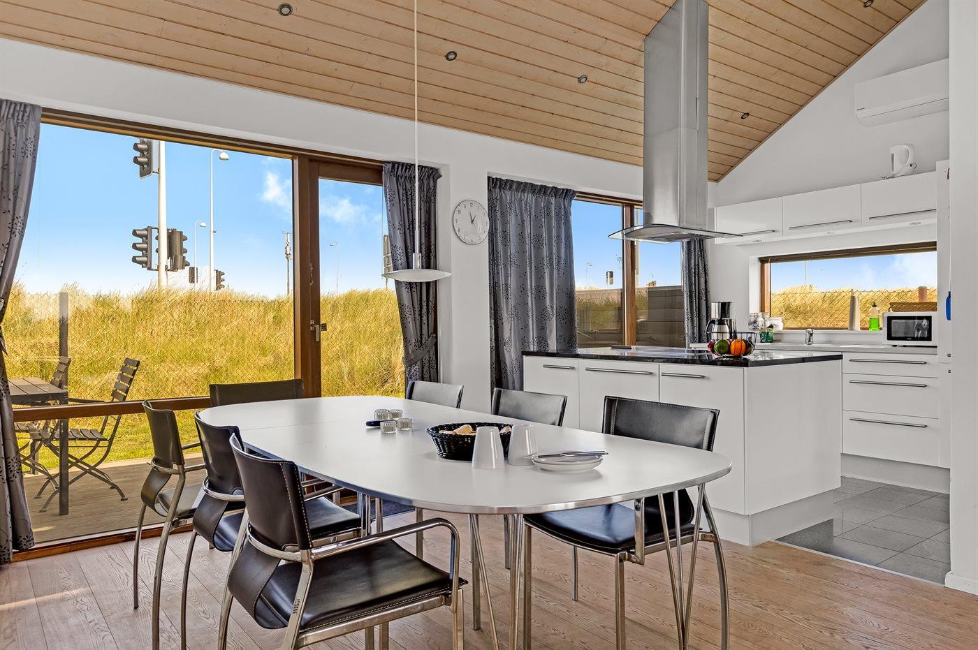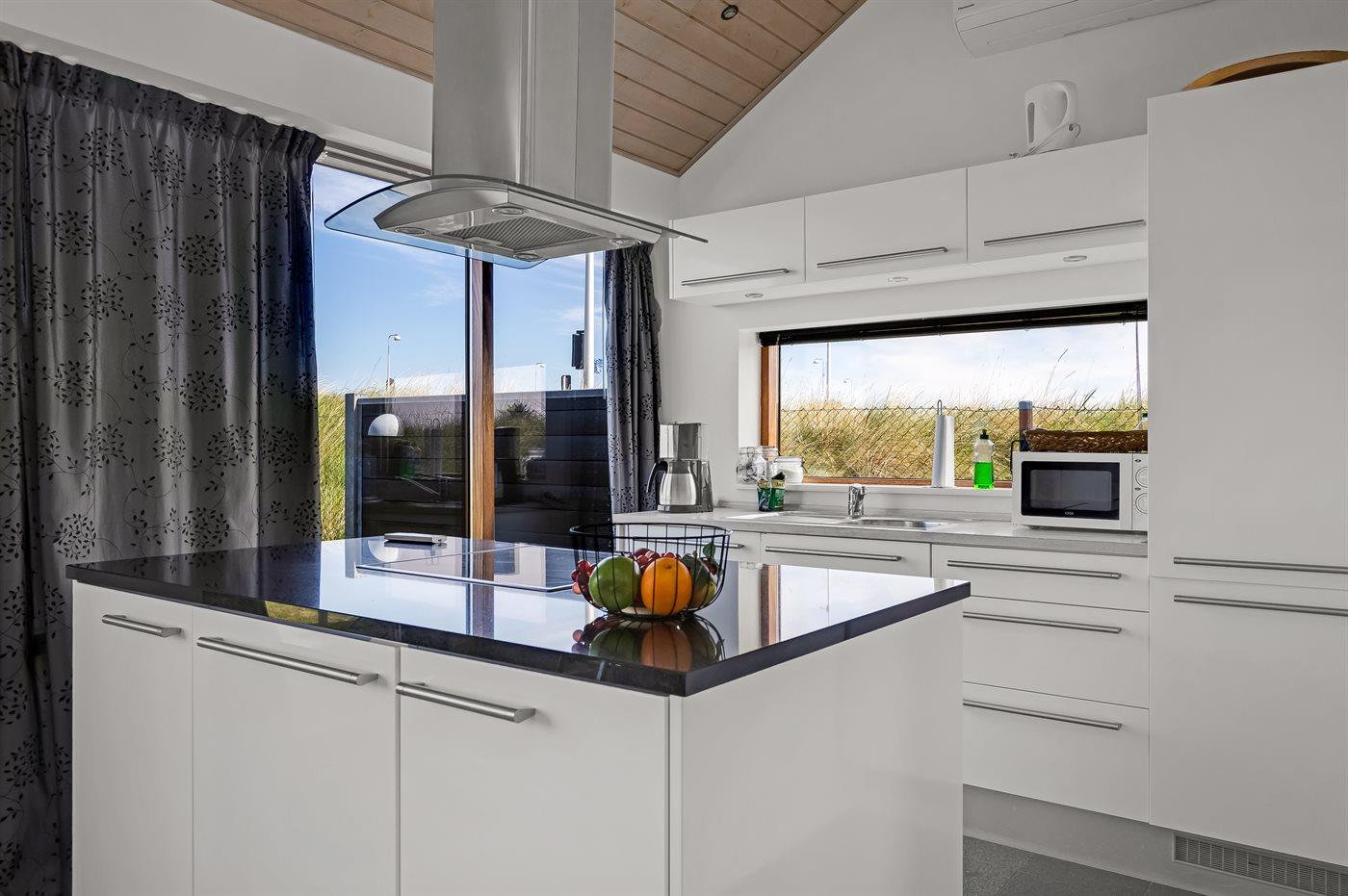 Køkkenet er udstyret med 1 køleskab. Der er 4 keramiske kogeplader, varmluftovn, mikrobølgeovn samt opvaskemaskine.