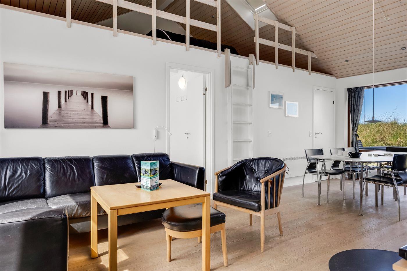 Sommerhus beliggende på hjørnet af Vesterhavsvej og Lakolk på strandsiden med strand og butikker indenfor gå-afstand. Dobbeltport med lås på begge sider sikrer såvel børn og hunde inde på grunden. God skabsplads i begge soveværelser. Huset er indrettet med hems hvorfra der er havudsigt, og hvor 2 af sovepladserne i dobbeltseng befinder sig.