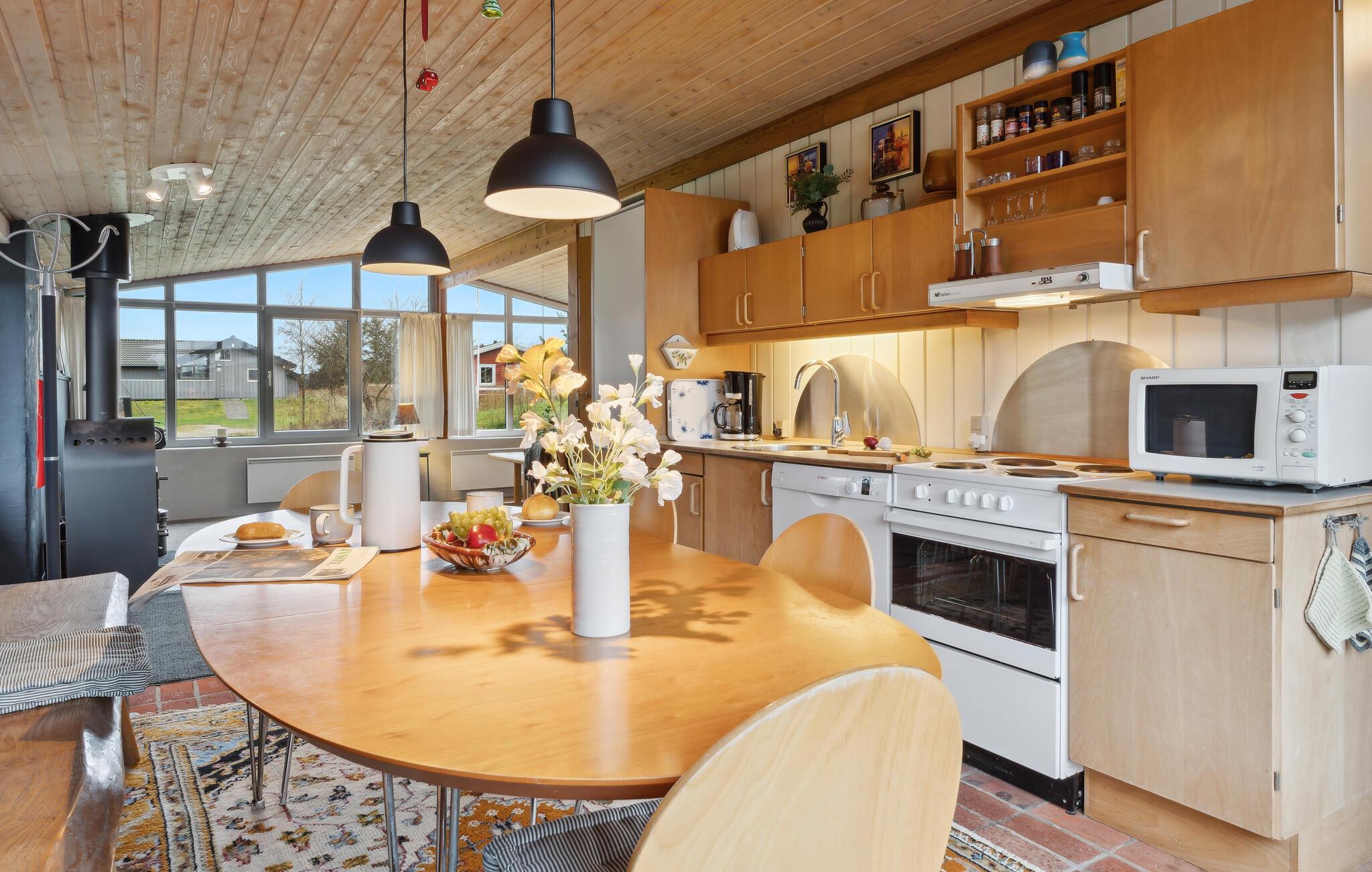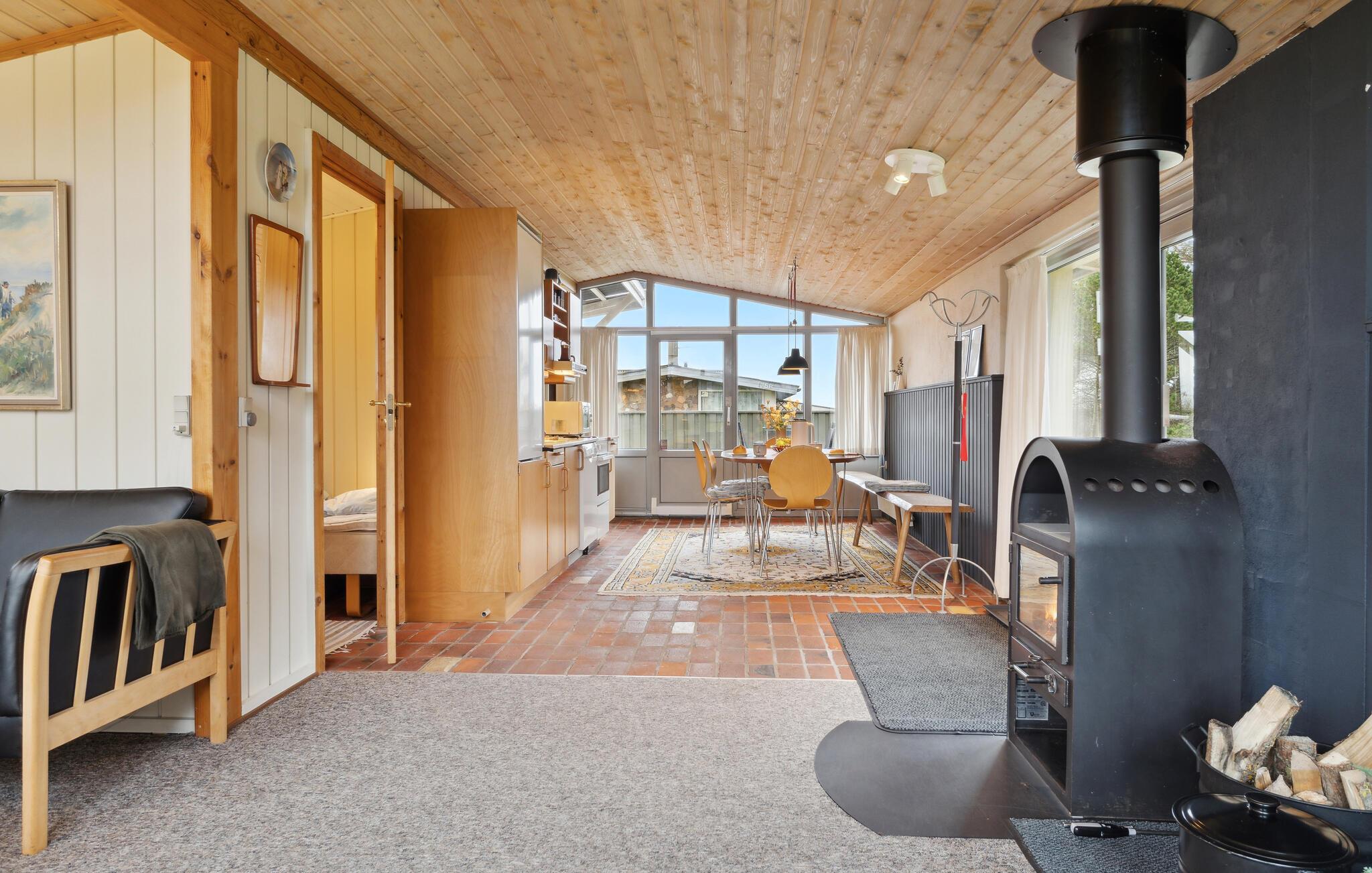 Ikke langt fra den tyske grænse ligger perlen Rømø i Vadehavet, hvor I finder dette dejlige og hyggelige sommerhus. På den naturskønne ø er det, som om tiden står stille, og den er derfor det perfekte sted at finde ro og hvile og glemme alt om hverdagen. Dette understøtter det dejlige sommerhus bestemt også med sine rummelige lokaler med den charmerende kombination af flisegulve og trævægge- og lofter. Tilbered lækre feriemåltider i husets veludstyrede køkken m. tilhørende spiseplads. I forlængelse heraf ligger den rummelige opholdsstue med fladskærm og brændeovn, der skaber en hyggelig stemning.