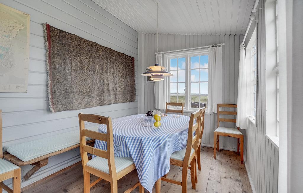 Når I træder ind i huset, mærker I straks den specielle, charmerende stemning, der bare lægger op til at slappe af og nyde ferien. Om morgenen kan I sidde ved bordet med en kop friskbrygget kaffe og lade blikket vandre over klitterne. Brug dagen på at læse jeres yndlingsbog eller spille et sjovt brætspil og tilbered senere et lækkert måltid til jeres familie i det store, moderne køkken.