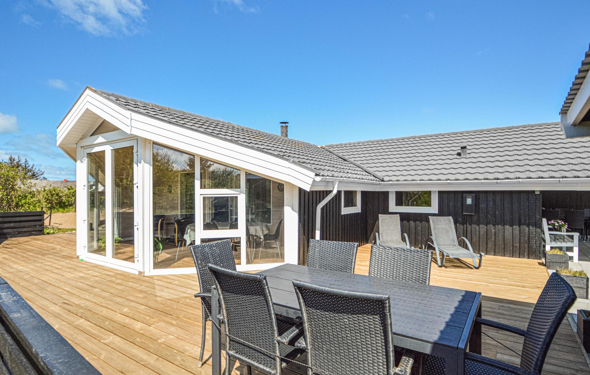 Fra den dejlige havestue er der adgang til den store terrasse, der byder på sol det meste af dagen, og hvor I kan slappe af i de gode havemøbler og ikke mindst grille lækre feriemåltider. I haven findes et legeområde til børnene med bl.a. gynger og fodboldmål. I har også mulighed for at spille beachvolley samt hygge jer ved bålpladsen, hvor også shelteret står klar til udendørs overnatning. Fra feriehuset er der kort gåafstand til Lakolk butikscenter og den lækre, brede sandstrand.