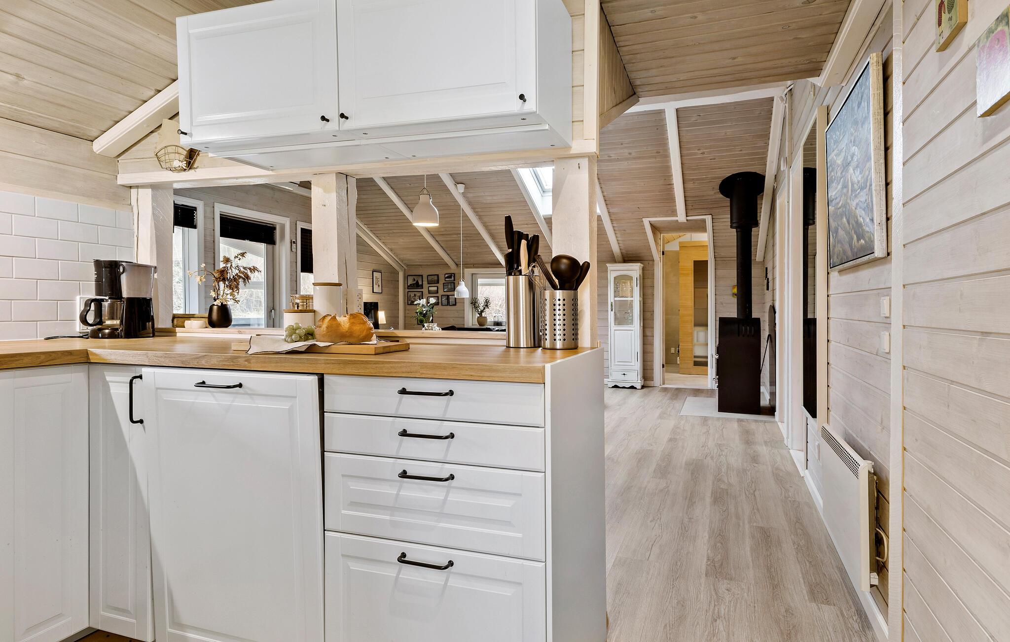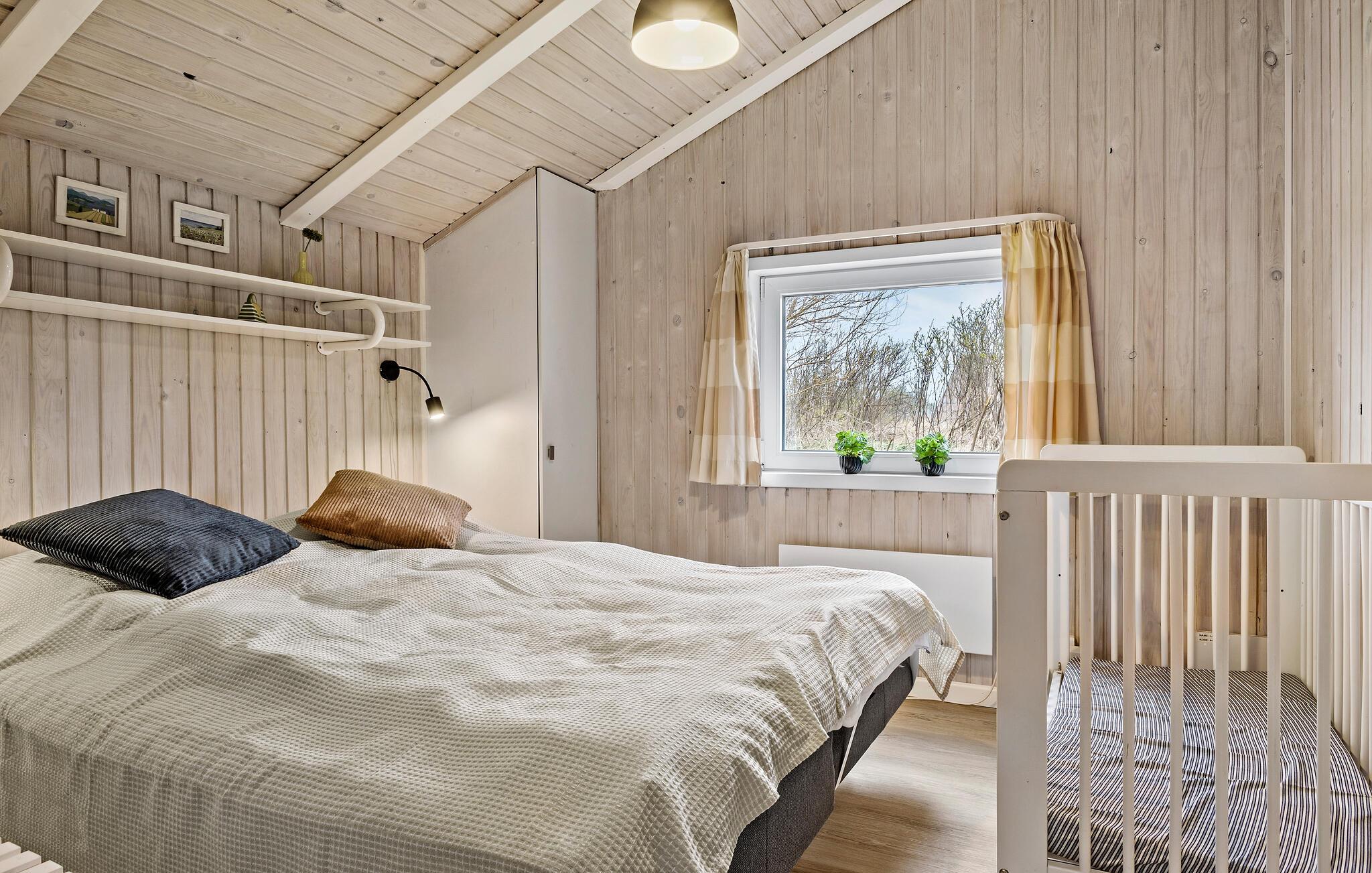 Rigtig lækkert feriehus beliggende på en stor naturgrund for enden af en lukket vej. Huset er utrolig velindrettet med et godt køkken/alrum med loft til kip og ovenlysvindue over sofagruppen, der giver et godt lysindfald. Nyd at sidde foran brændeovnen på kølige aftener, der samtidig spreder en dejlig atmosfære i rummet. I husets 3 soveværelser er der god skabsplads, og i det ene værelse står en barneseng. I det ene af de 2 badeværelser kan I dase i badekarret og blive varmet godt igennem i saunaen efter en dejlig gåtur langs stranden.