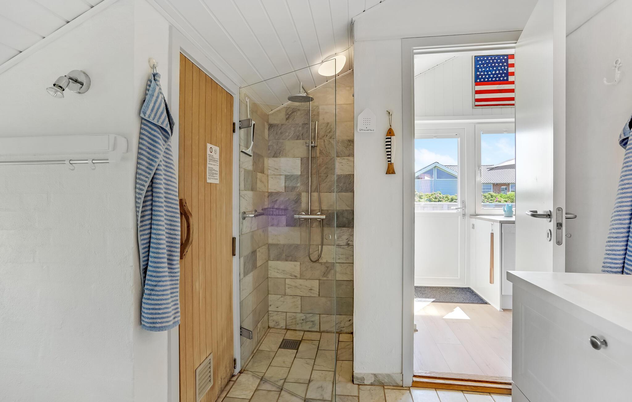 Flot feriehus i klitterne ved Lakolk, kun 350 m fra den brede sandstrand og med sauna og spabad.
