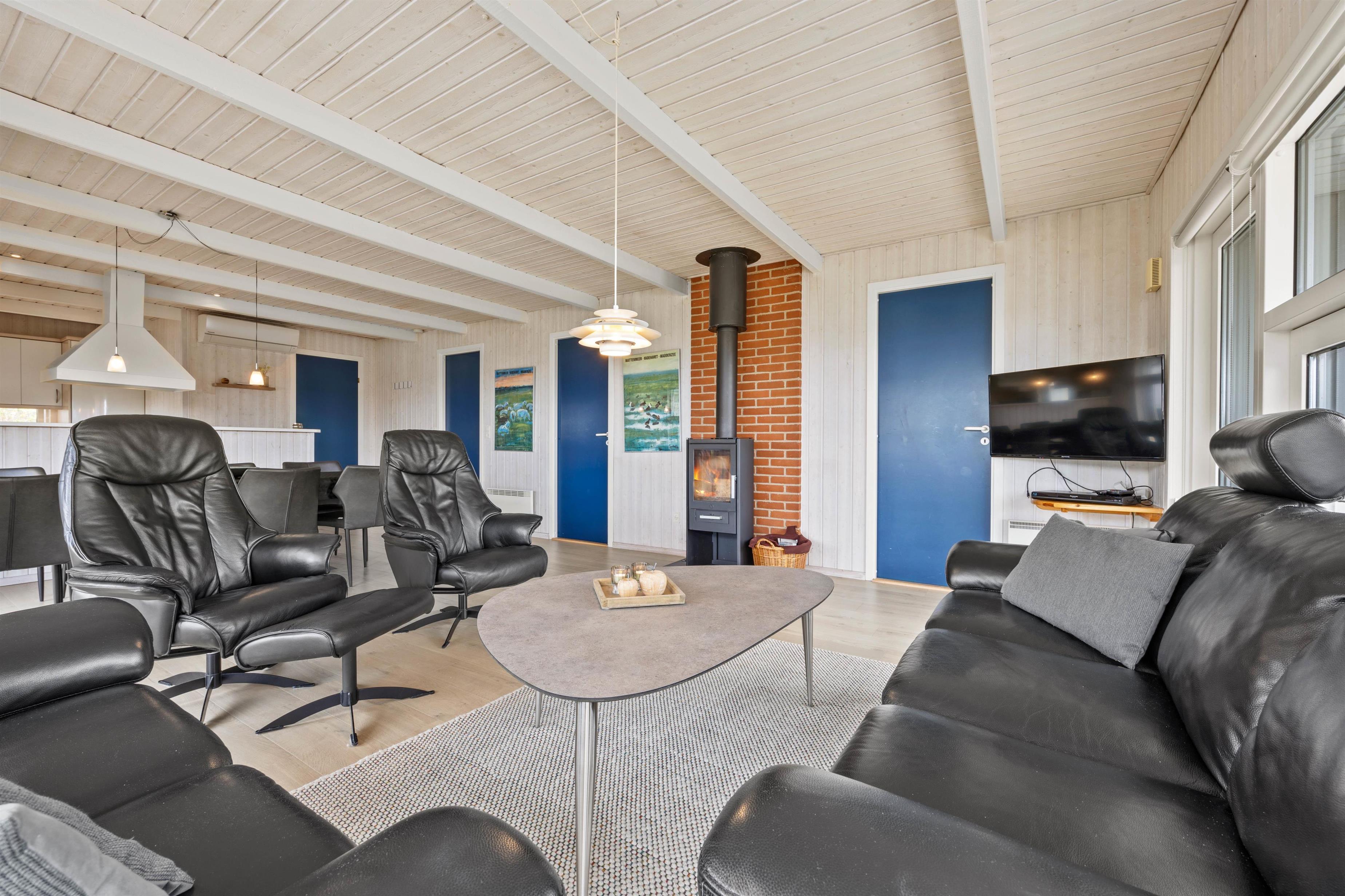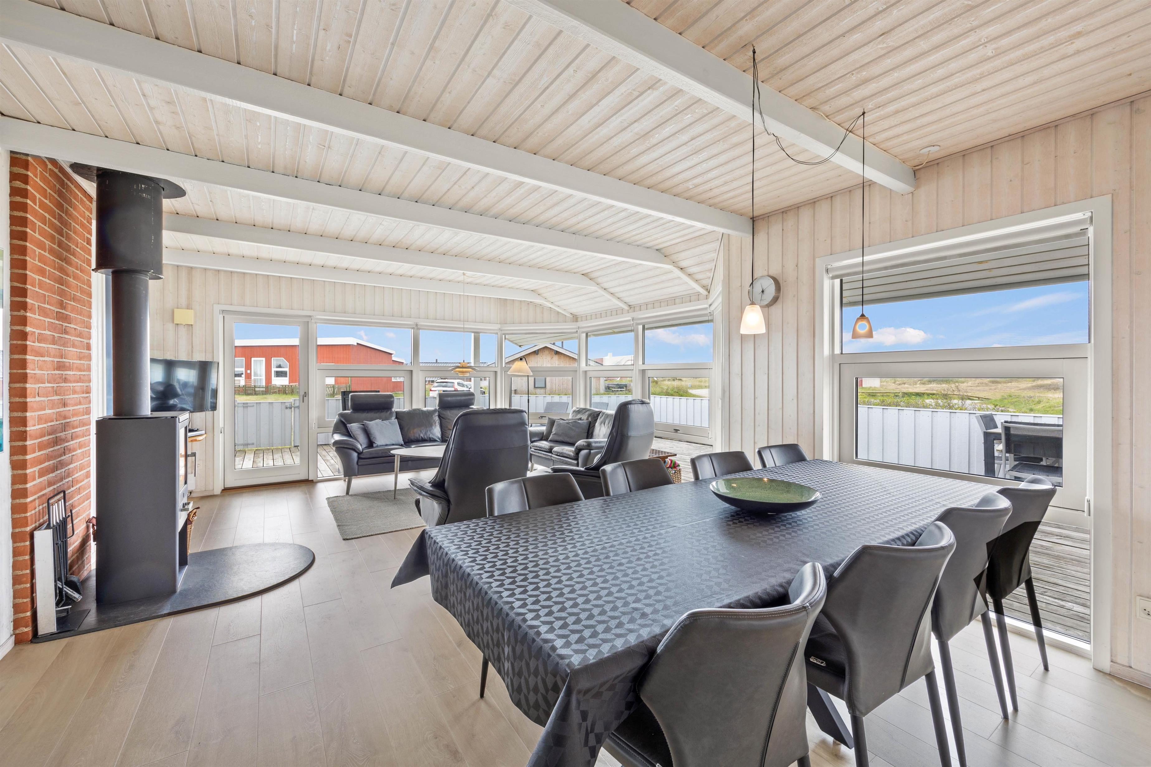 Dette dejlige sommerhus på Rømø byder på en charmerende og behagelig indretning. Fra entréen, med både vaskemaskine og tørretumbler, kommer I ind til køkkenet og alrummet. I det åbne og praktiske køkken kan I lave mad sammen, og i stuen kan I slå jer ned i de behagelige møbler med den knitrende brændeovn i baggrunden. Herfra kommer et dejligt lysindfald fra det store vinduesparti.