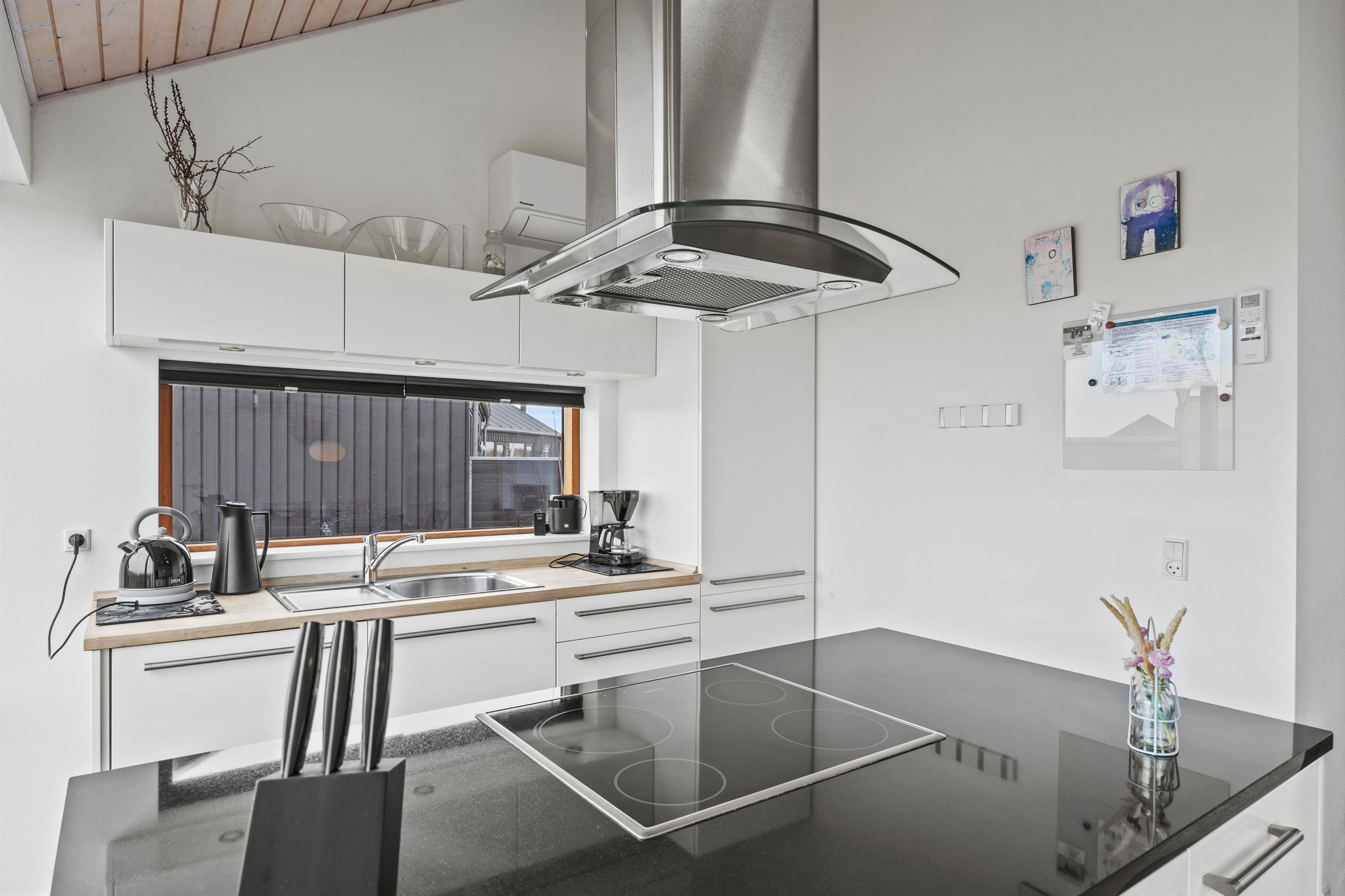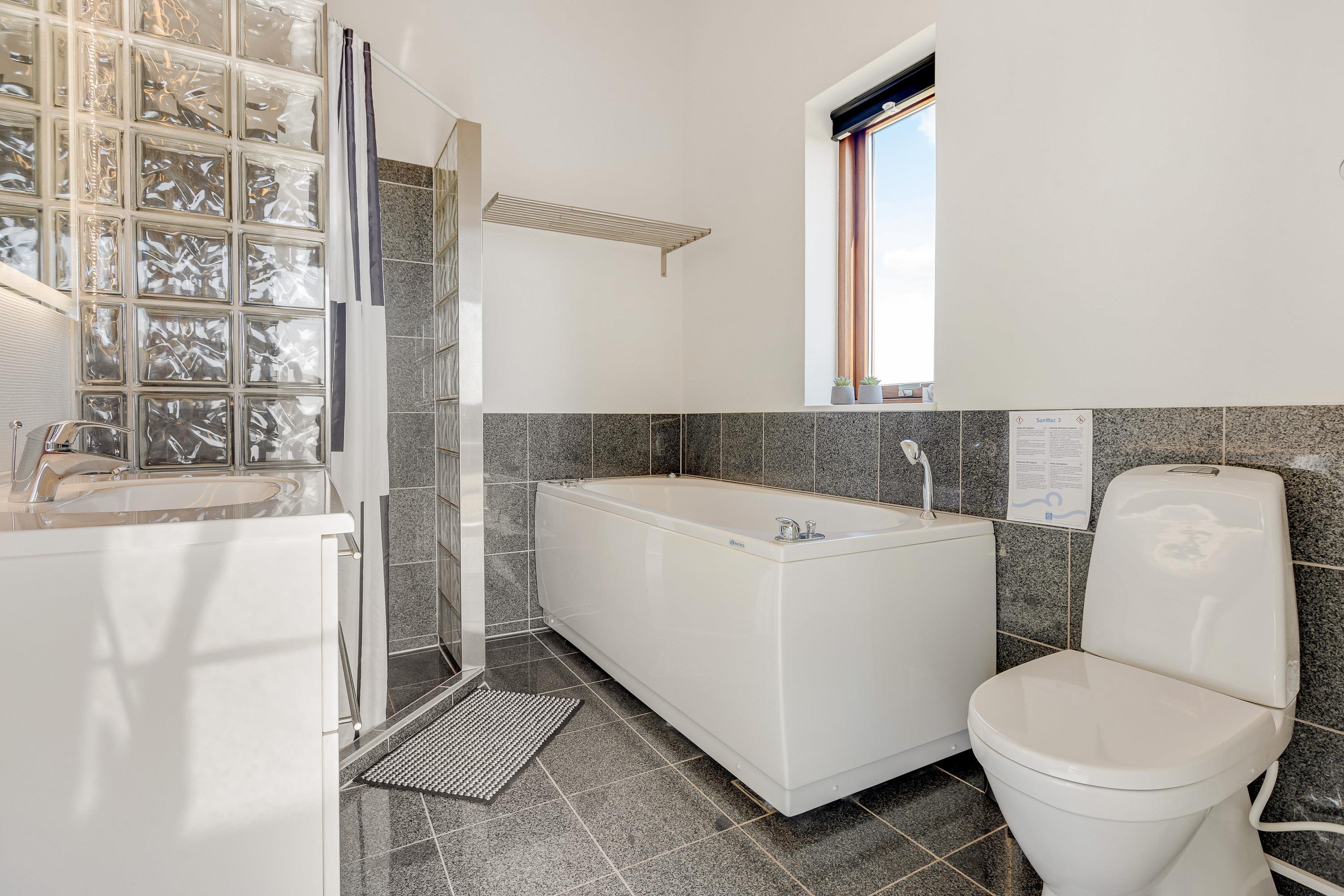 Det moderne køkken med kogeø overbeviser med elektriske apparater af høj kvalitet og omfatter naturligvis også en opvaskemaskine. Slap af i den rummelige sofa foran den knitrende pejs og læs en god bog eller arranger en stor madlavningsaften med hele familien. Med den energibesparende varmepumpe kan du hurtigt bringe sommerhuset op på en behagelig temperatur.
