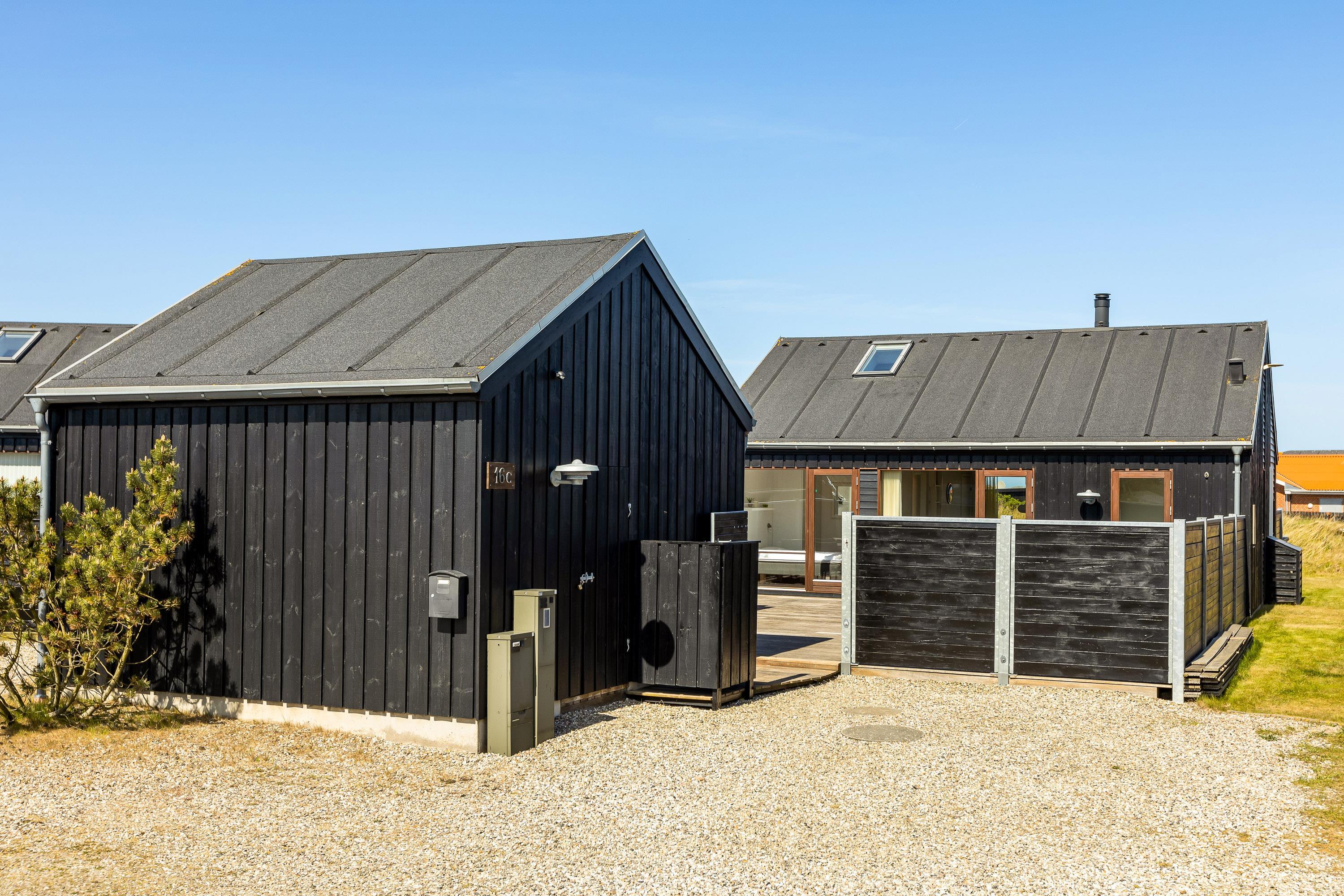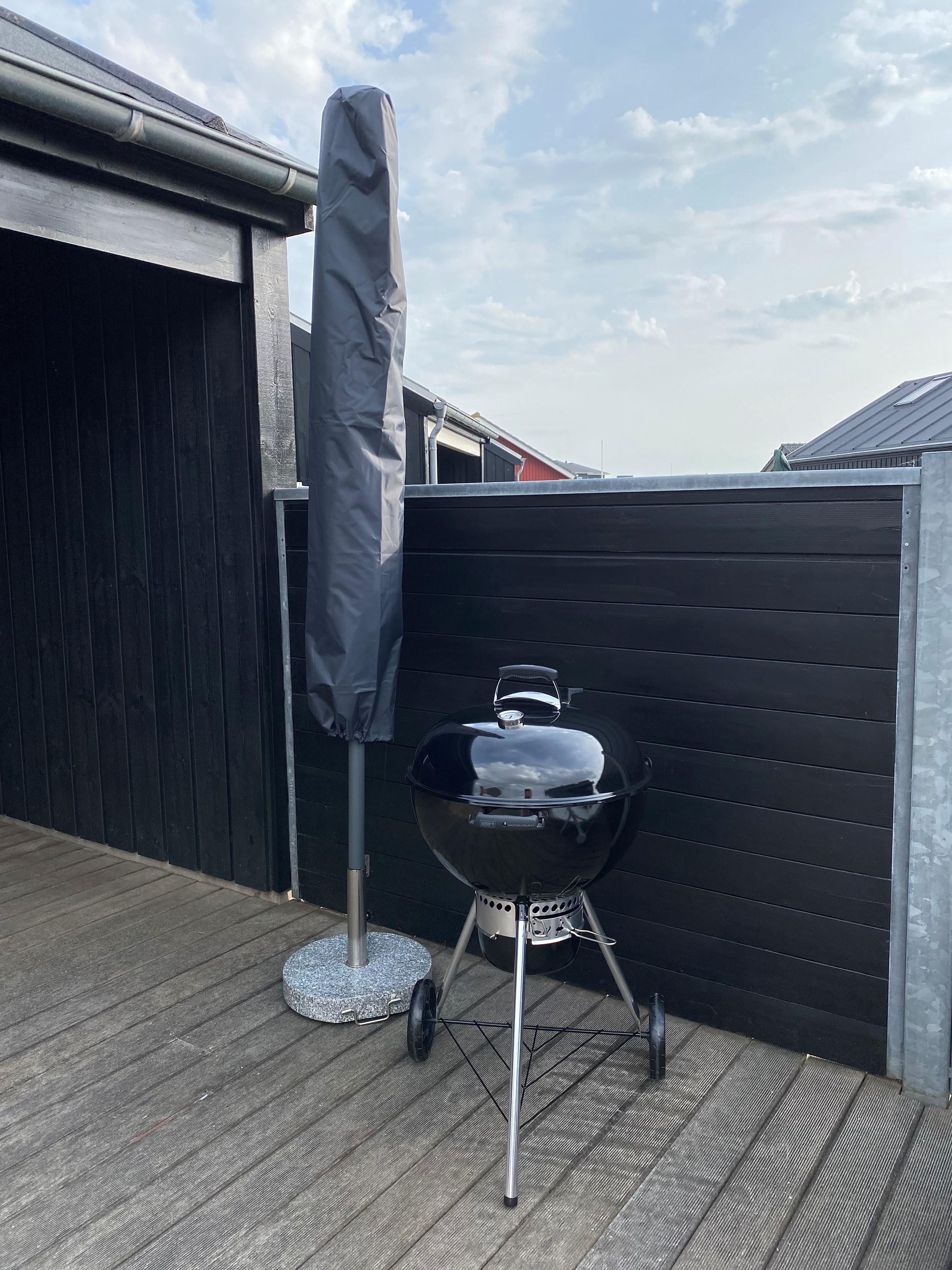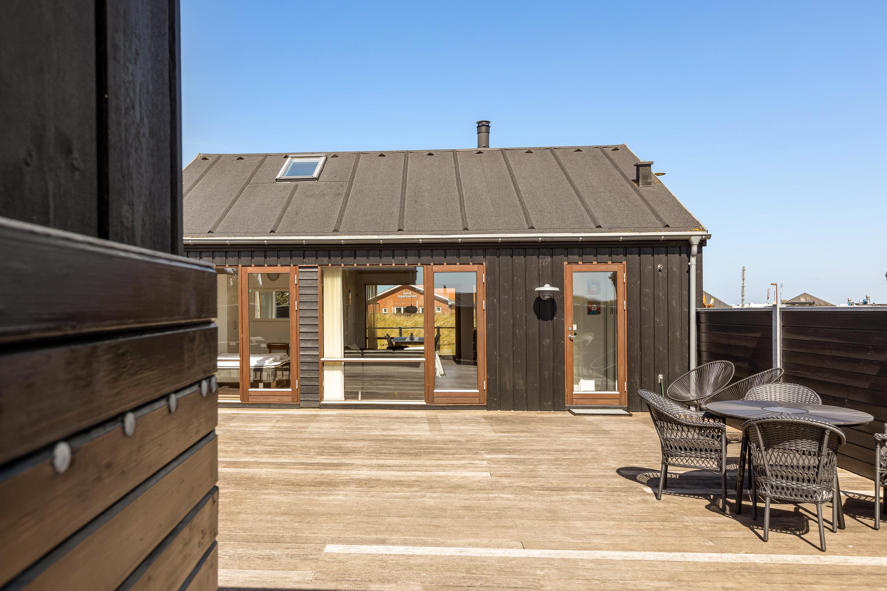 Fra spiseområdet er der direkte adgang til den mindre af de 2 terrasser på den nordvestlige side af feriehuset. På den sydlige side er der en stor, delvist overdækket terrasse. Den kan også lukkes helt, så du kan slappe af, mens dine børn leger på terrassen. Nyd solen i de komfortable havemøbler med en dejlig eftermiddagskaffe eller nyd solnedgangen, mens I griller på en lun sommeraften.