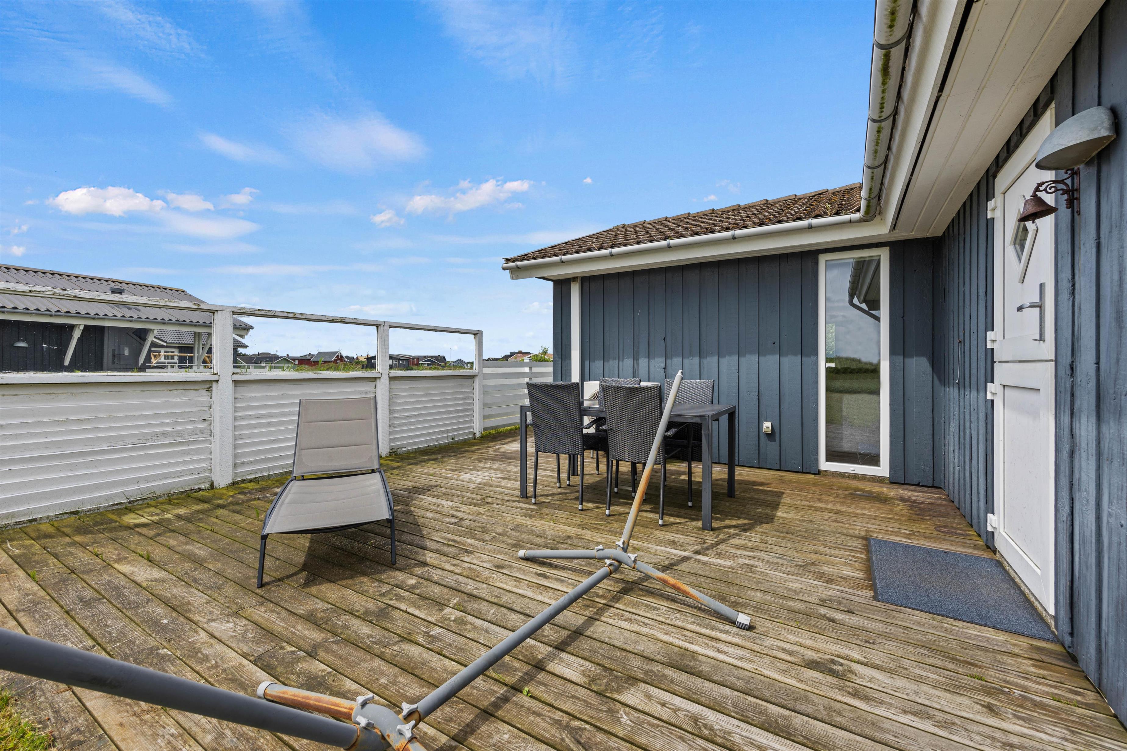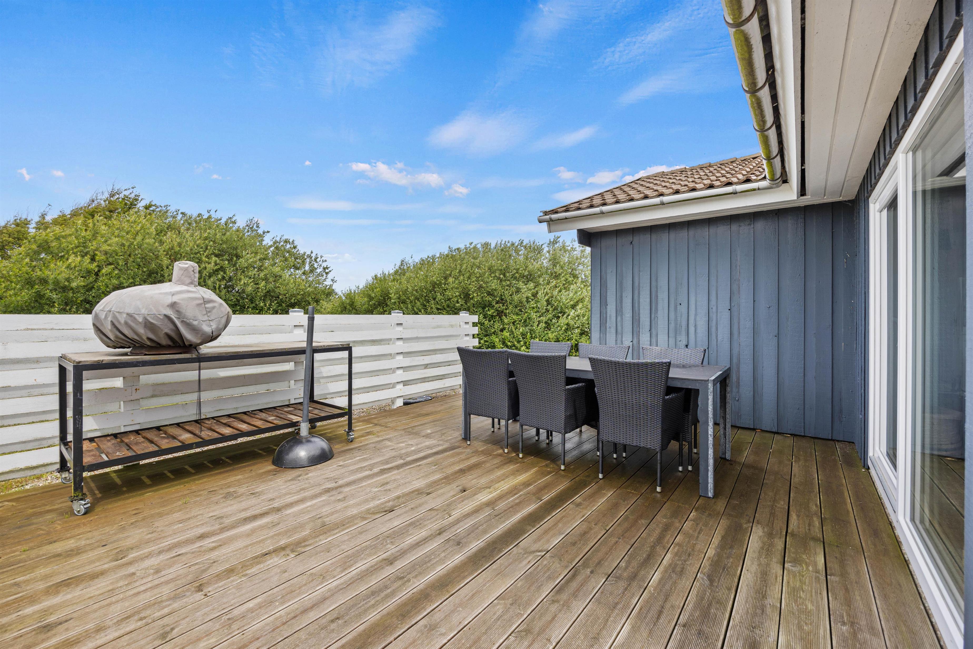 Udenfor kan I nyde den friske salte Vesterhavsluft og udsigten udover det smukke naturområde. Havemøblerne står klar til de varmere dage, så I kan nyde solskinstimerne. Også her kan I holde de skønneste grillaftner; køb lidt ekstra lækre råvarer og tilbered en dejlig middag.