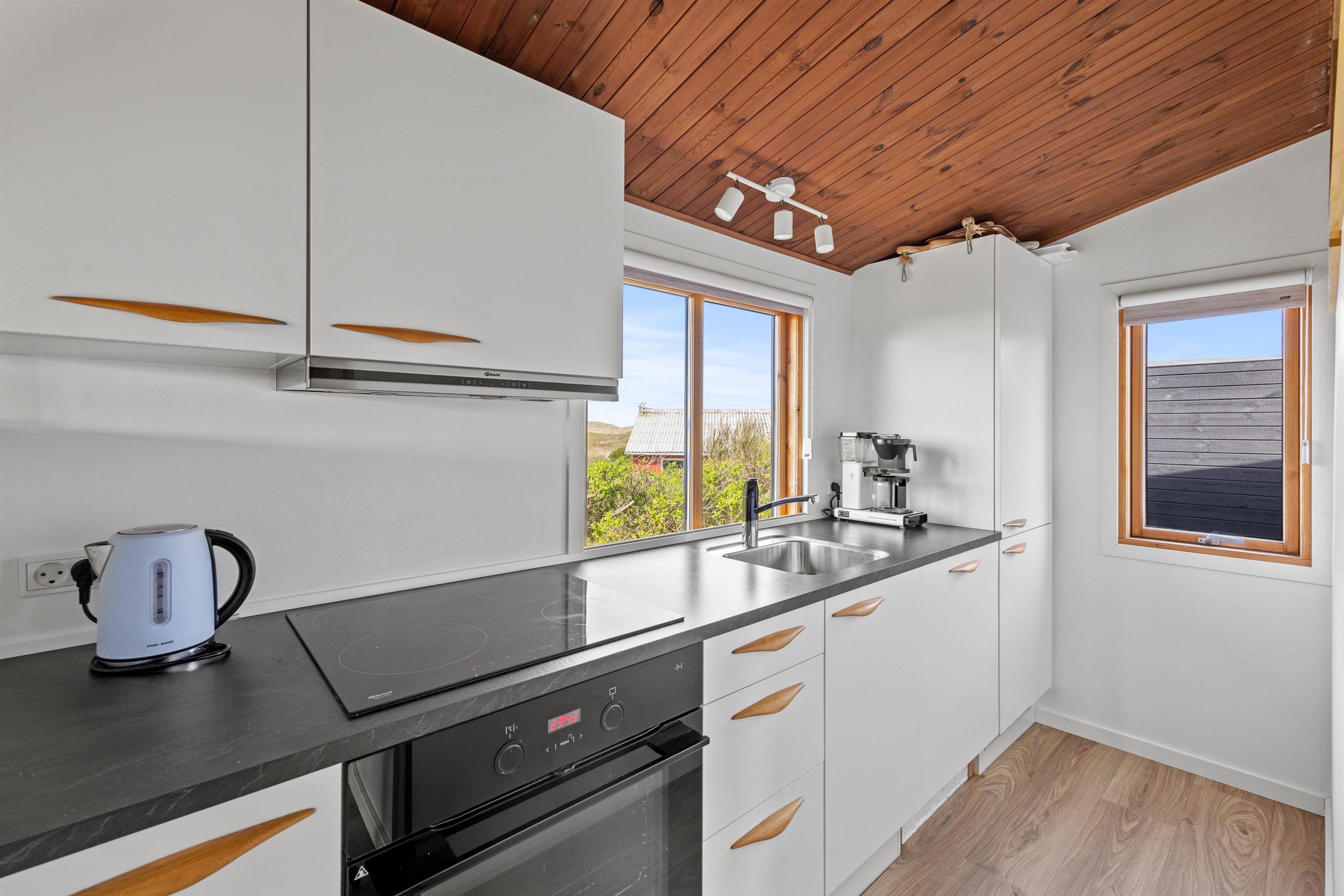 Udenfor kan I nyde den friske salte Vesterhavsluft og udsigten udover de smukke klitter. Havemøblerne står klar til de varmere dage, så I kan nyde solskinstimerne. Også her kan I holde de skønneste grillaftner; køb lidt ekstra lækre råvarer og tilbered en dejlig middag.