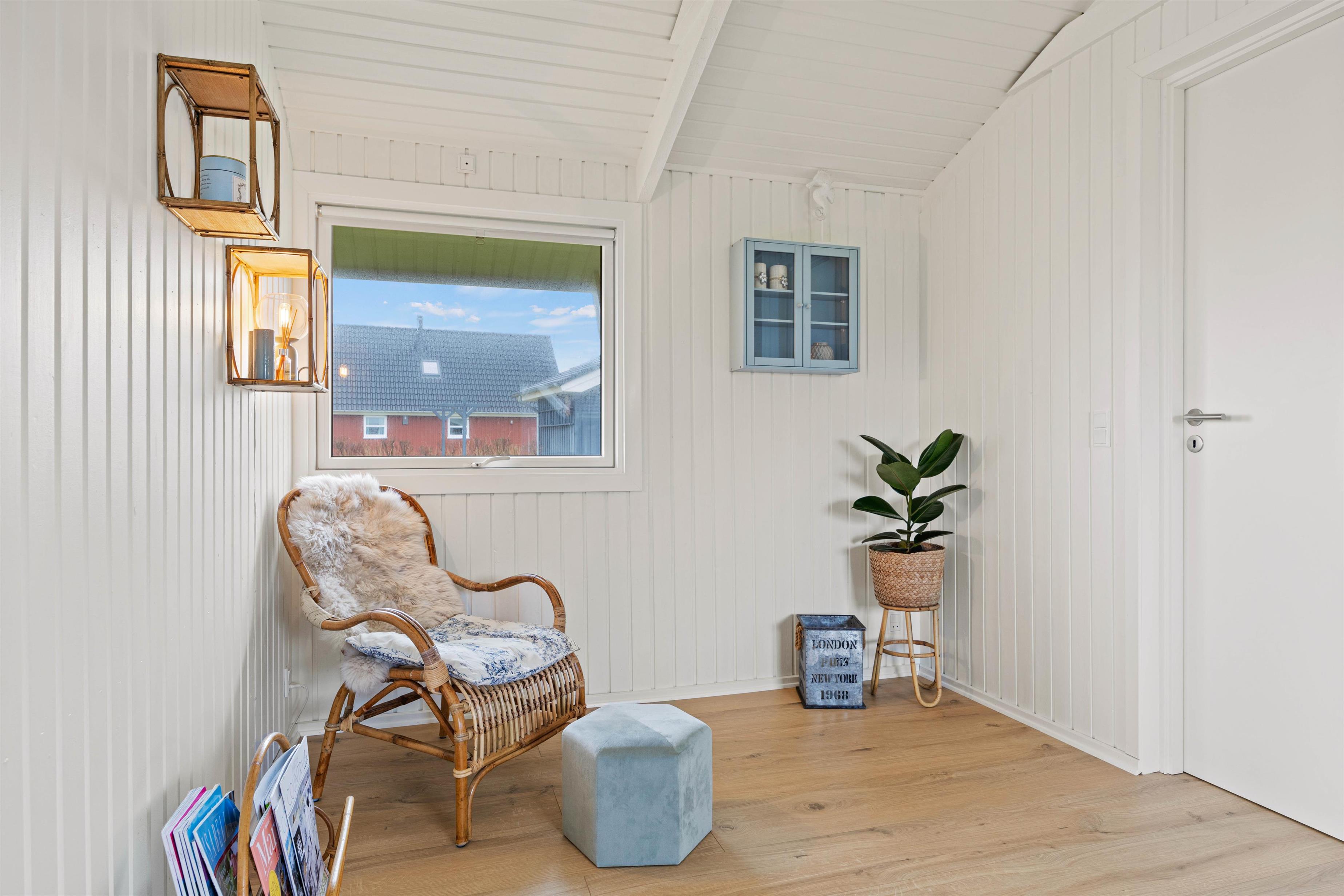 Skønt feriehus nær indkøb og stranden, der er små 700 meter fra huset. Fra terrassen er den fineste udsigt udover de fredfyldte naturplantager, mens den står på familiehygge med film foran brændeovnen på de køligere dage.