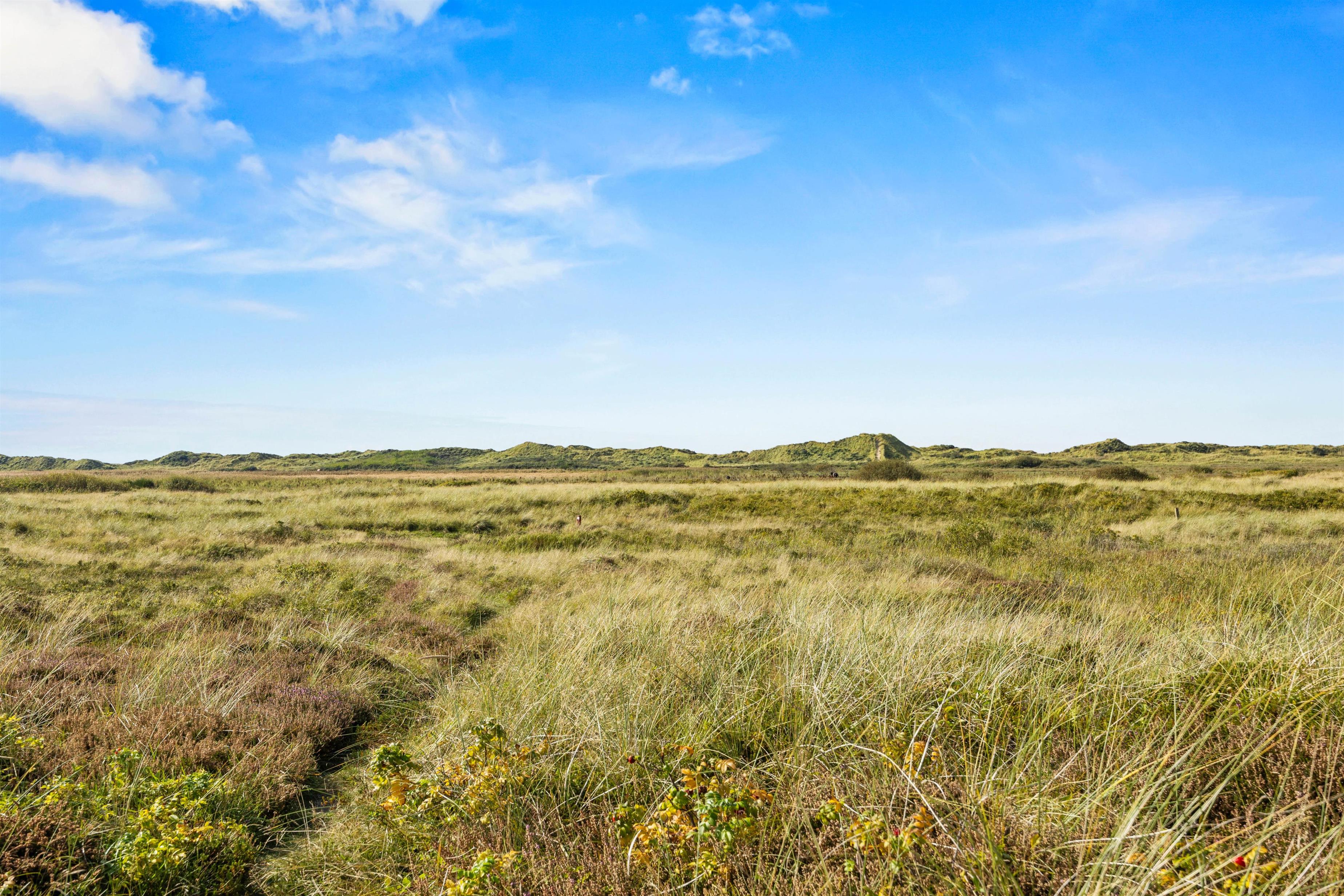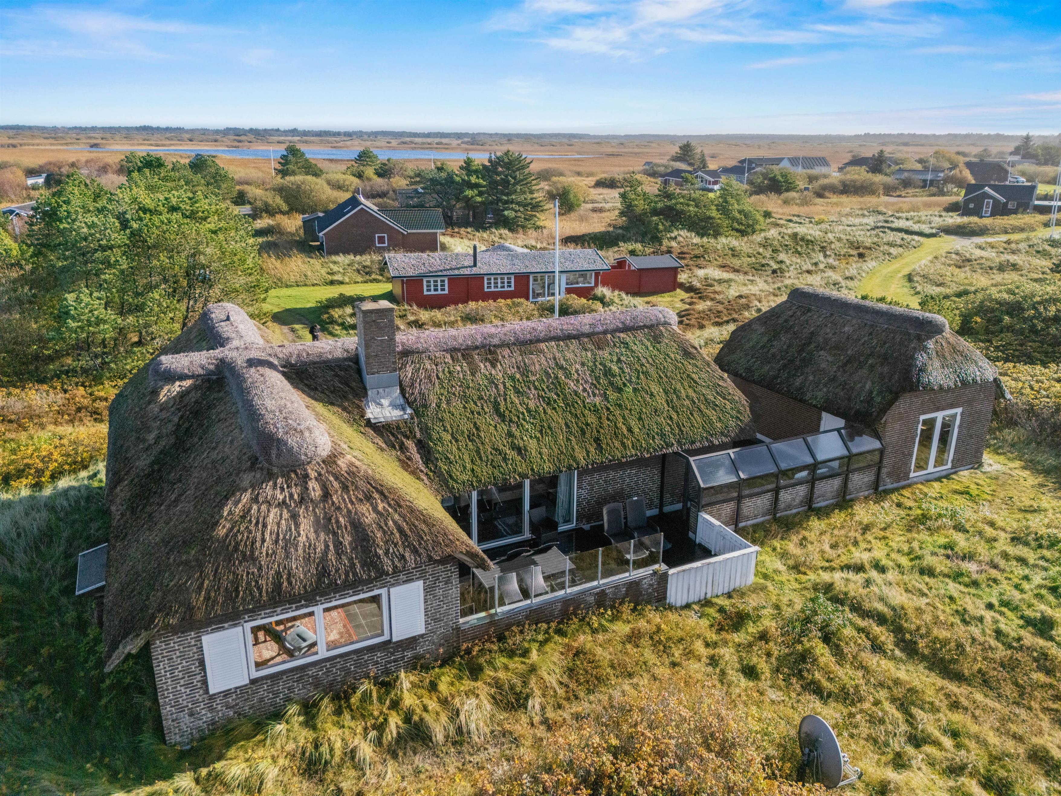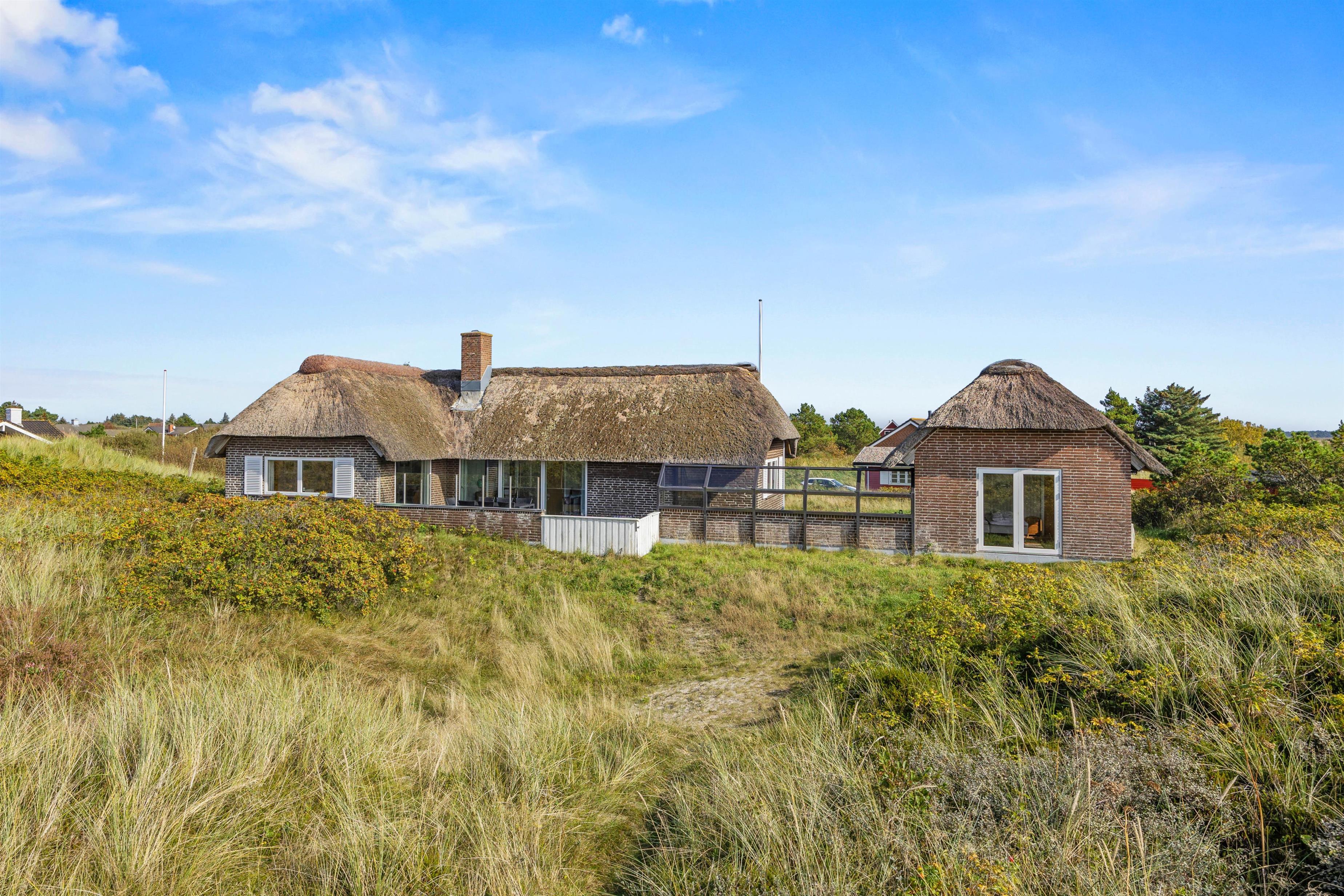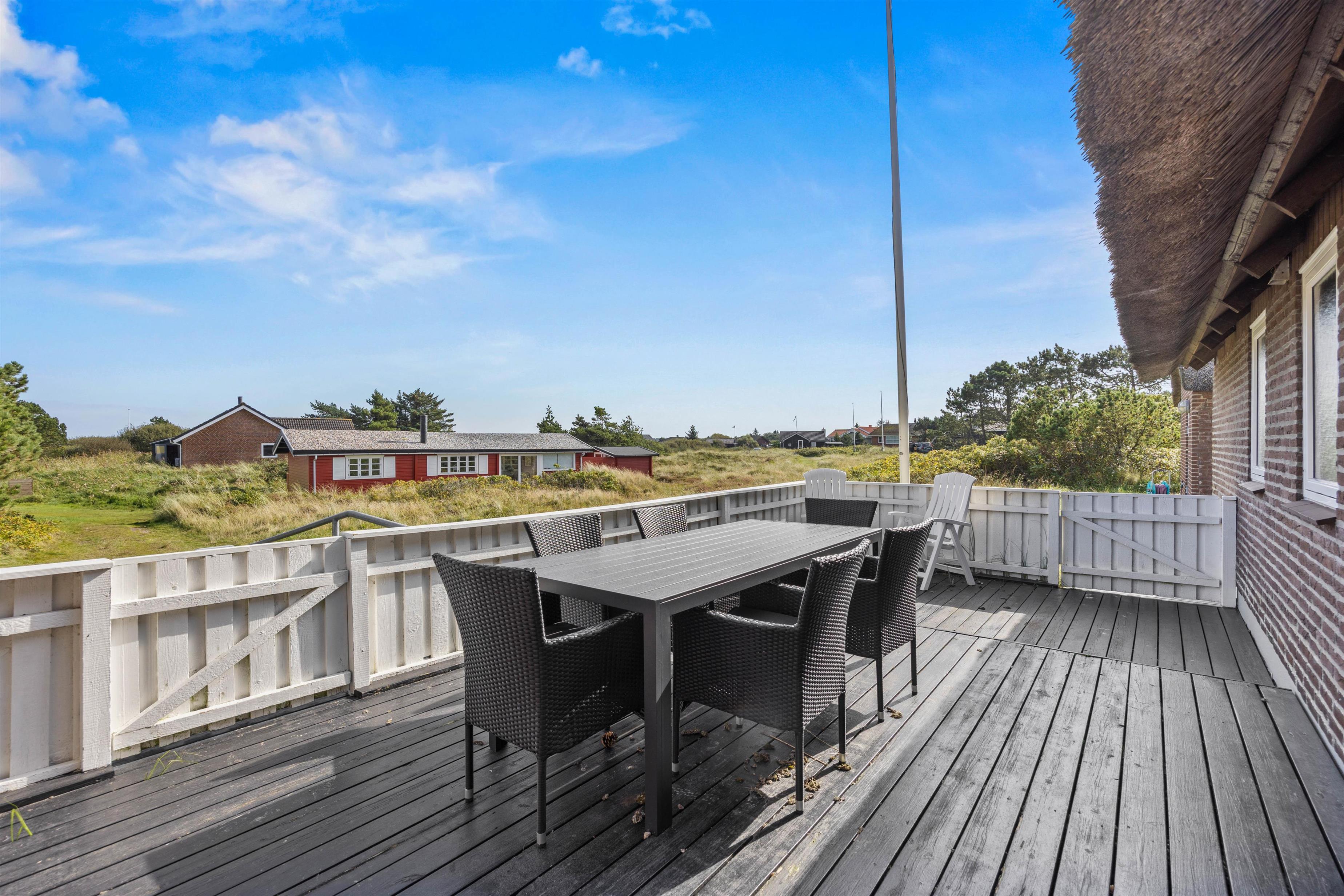 Sommerhuset ligger 600 meter fra den brede sandstrand på Lakolk, og en lille sti ved huset fører gennem klitterne til stranden. Ved huset er der flere store og beskyttede terrasser med havemøbler, så I altid kan finde en plads i solen og læ for vinden. Her kan I virkelig nyde husets unikke beliggenhed og roen og friheden.