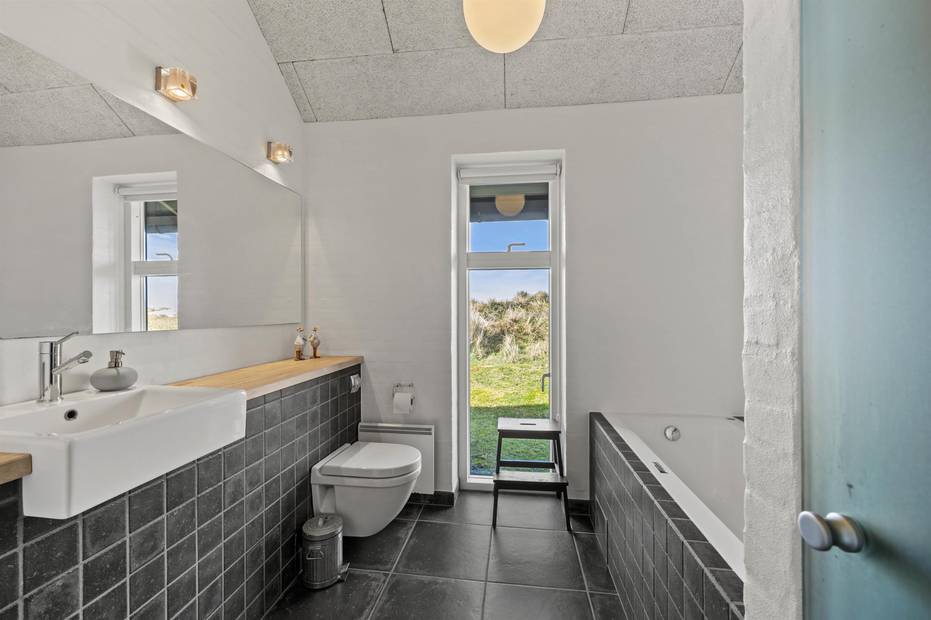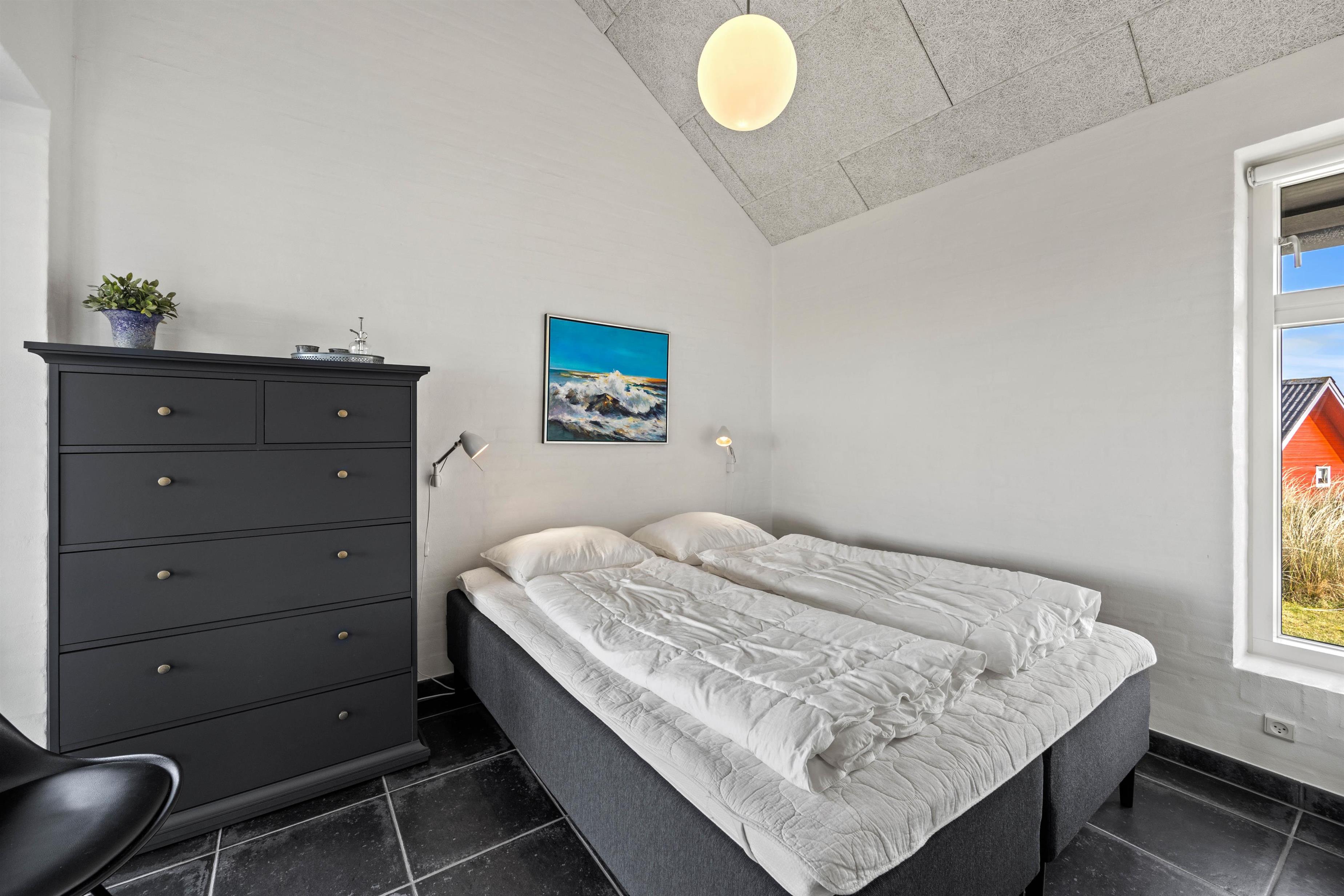 Det smukke sommerhus har tre soveværelser. Alle er udstyret med gode senge, to med dobbeltseng og det sidste med to enkeltsenge. Få at undgå kø om morgenen har I både et gæstetoilet samt et stort badeværelse. På badeværelset er der vaskemaskine, tørretumbler og et dejlig badekar til afslapning.