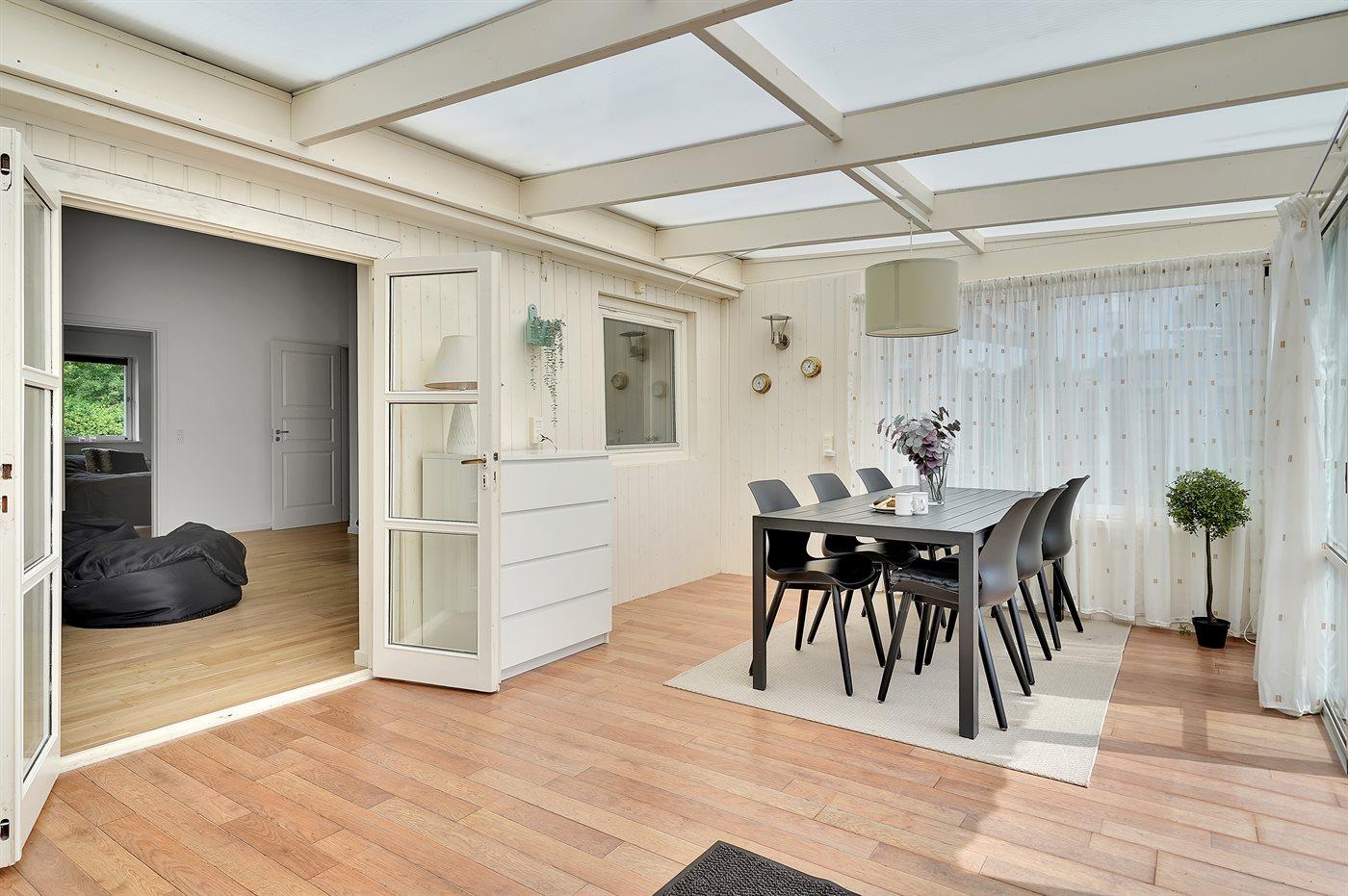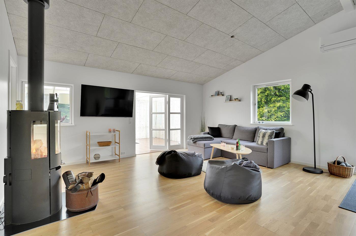 Huset er med køkken, spiseplads og stue ud i et. Herfra er det udgang til en stor udestue. Der er er 3 gode soveværelser. Alle rum på nær badeværelset er med loft til kip, hvilket bidrager til en god rumfornemmelse. Der er et dejligt badeværelse med gulvvarme, bruseniche og en vaskemaskine/tørretumbler som kombimodel.