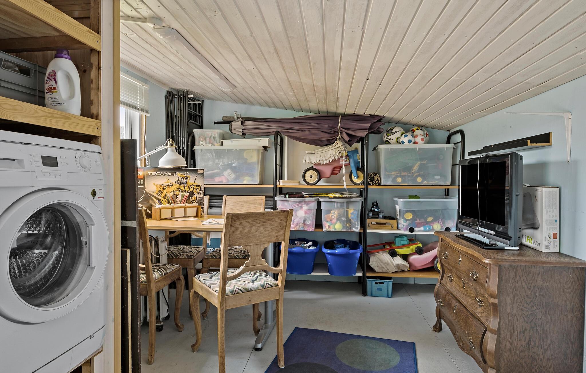 Terrassen er delvist overdækket, så her er der både sol og skygge på de varme sommerdage. Huset er omkranset af en velholdt, grøn have, som er skøn at kigge ud på fra stuen og terrassen. Slip børnene løs på den store grund, hvor de sikkert kan få masser af tid til at gå boldspil og gemmeleg.