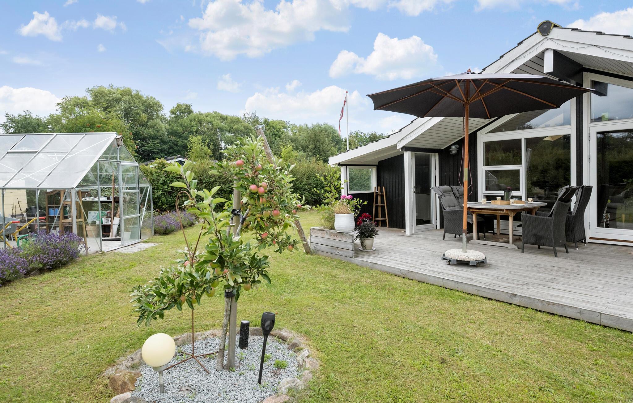 Glæd jer til en skøn familieferie i dette hyggelige sommerhus med stor have.