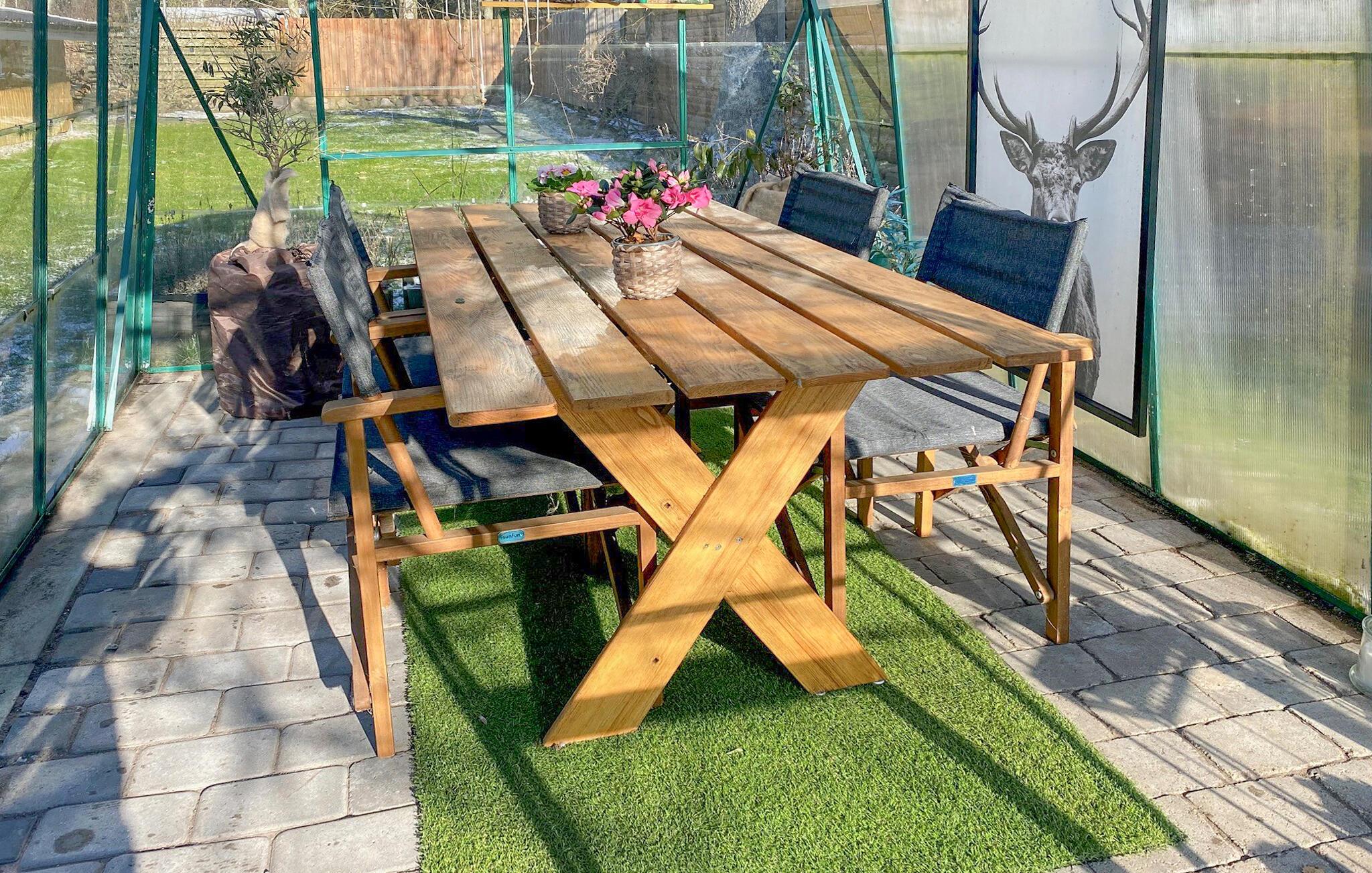 På den overdækkede terrasse glemmer I hurtigt alt om hverdagen, for her kan alle mærke en skøn fred og ro. Find jer godt til rette i de komfortable møbler og brug den store have til en lang række fritidsaktiviteter. Uanset om det er fodbold eller badminton kan hele familien hygge sig her. Børnene kan boltre sig i sandkassen eller legehuset, mens I nyder aftenstunden. Vil I gøre det ekstra hyggeligt, kan I tænde op i bålstedet og sidde ude til mørket falder på.