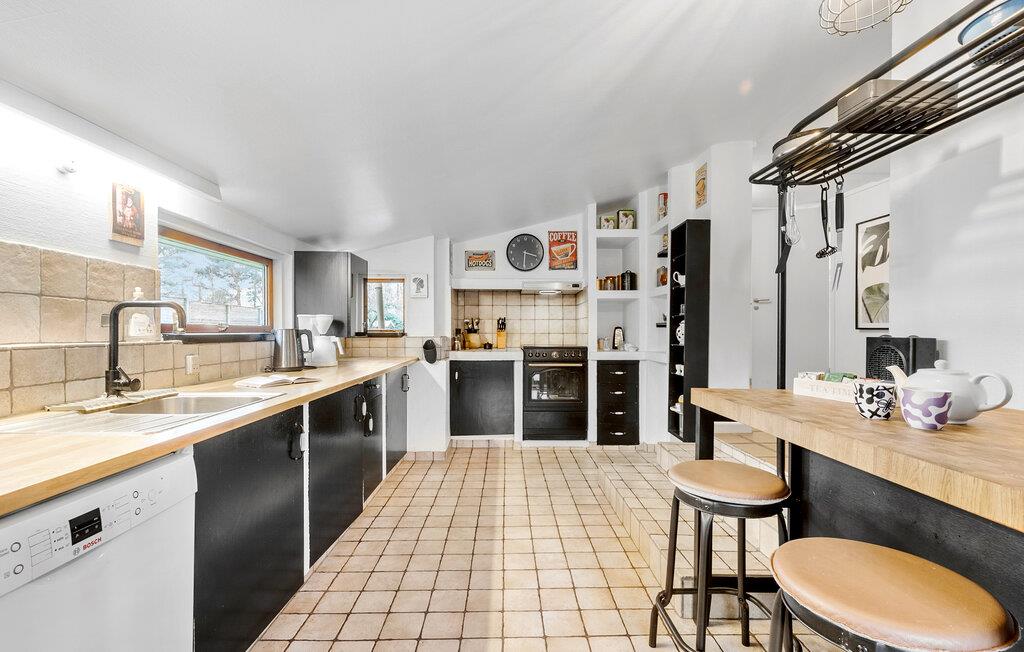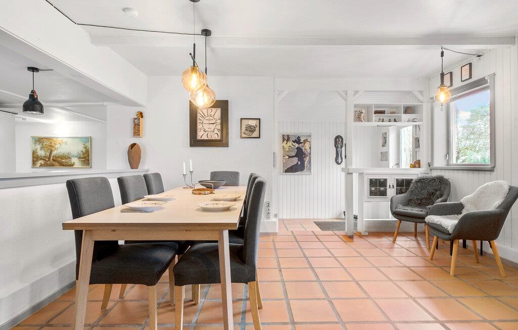 Dette sommerhus har en lys og komfortabel opholdsstue, hvor I straks vil føle jer hjemme. Begynd dagene med en solid morgenmad ved spisebordet i det rummelige køkken. Efter at have spist kan I læne jer tilbage i sofaen i stuen ved brændeovnen. Sæt jer til rette her og nyd en afslappende filmaften med familien.