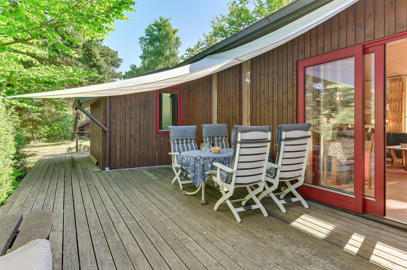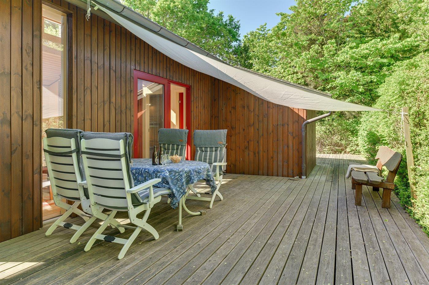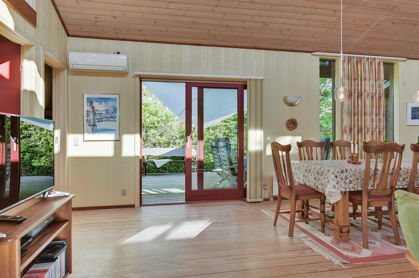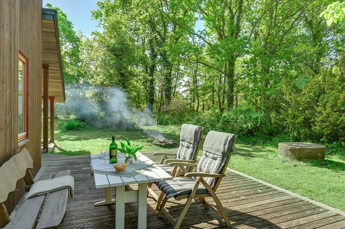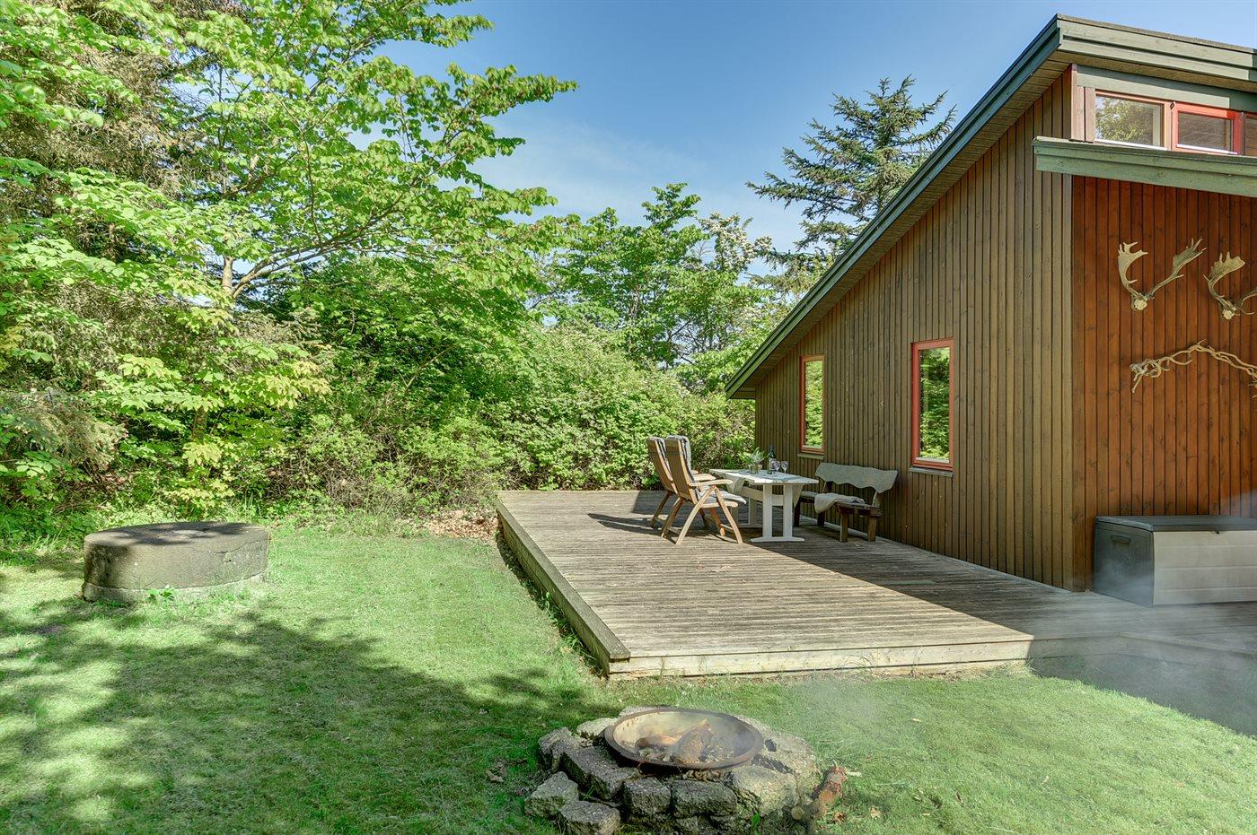 Ferieboligen er beliggende på en 2700 m² stor naturgrund. Der er 250 m til havet. Nærmeste forretning er beliggende i en afstand af 9000 m. Til ferieboligen hører 115 m² terrasseareal. Desuden er der 10 m² overdækket terrasse. Sandkasse. Grill til rådighed. Parkering ved ferieboligen.