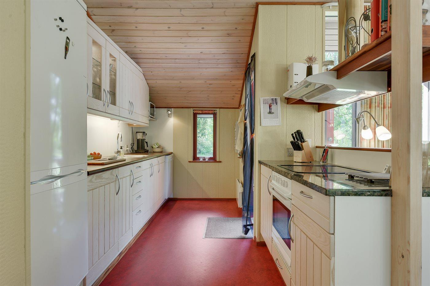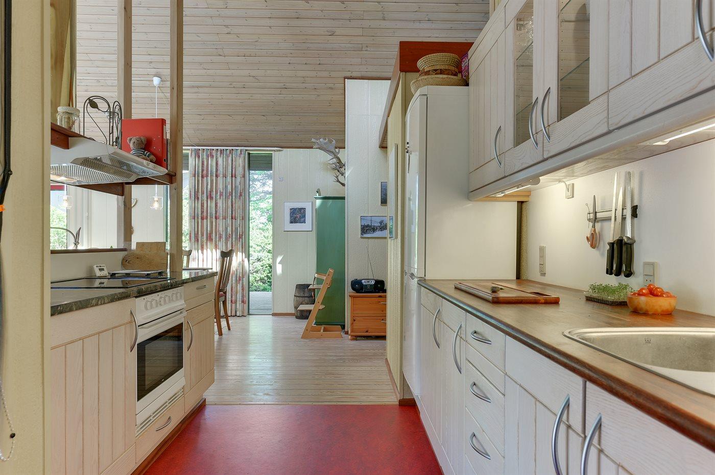 Køkkenet er udstyret med 1 køleskab. Der er 4 keramiske kogeplader, varmluftovn, mikrobølgeovn samt opvaskemaskine.