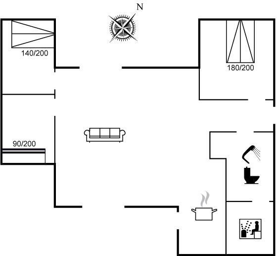 Der er i alt 3 soveværelser. Sovepladserne fordeler sig på: 4 sovepladser i dobbeltsenge. 2 sovepladser i køjeseng. Derudover er der 1 stk. barneseng.